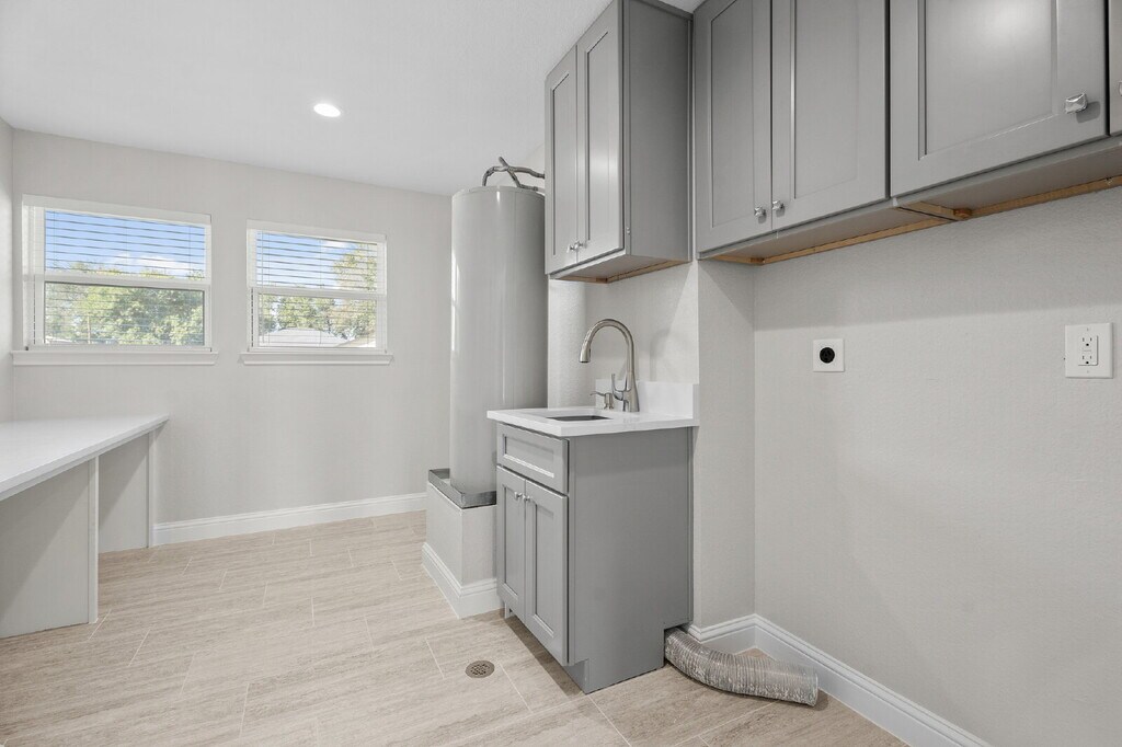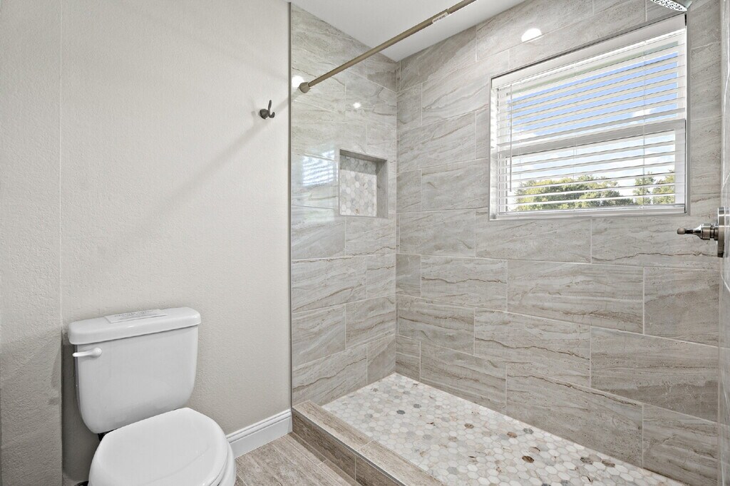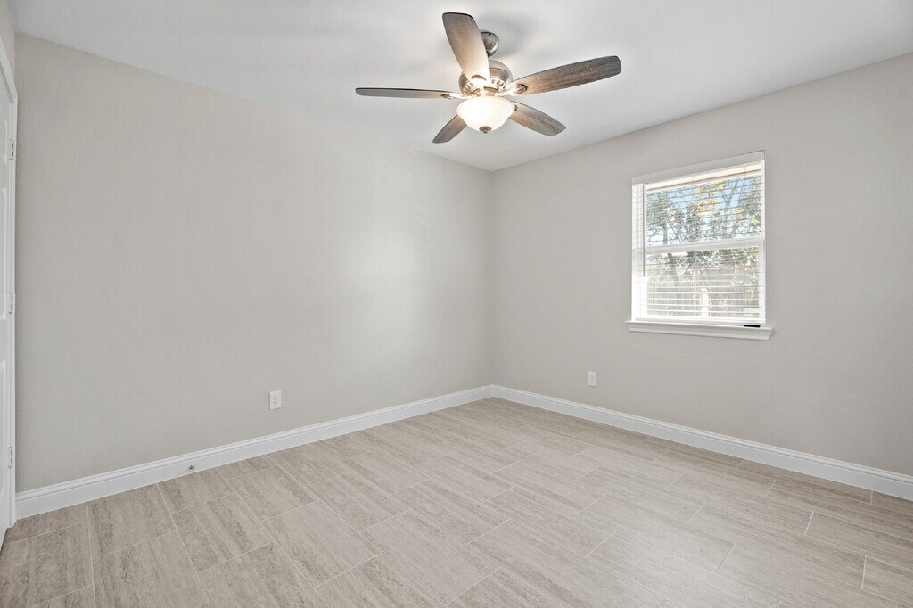 This 3-bedroom, 2-bath home in Pearland sits on nearly half an acre and combines modern finishes with the charm of country living. Taken down to the studs and rebuilt, the home features a fresh interior with tile flooring, updated paint, high-efficiency storm windows, and a brand-new kitchen with quartz countertops, soft-close cabinetry, and a center island that opens to the large family room with a fireplace. The primary suite includes direct access to a private porch, along with an en-suite bath featuring updated finishes. The spacious lot offers plenty of room for outdoor living with a backyard patio, partially fenced yard, and open green space. Additional highlights include a formal entry, high ceilings, a spacious utility room with a sink and washer/dryer connections, brand new central HVAC, well water and septic system, and landscaping provided. Located with easy access to Pearland schools, shopping, and major commuter routes.Quartz Countertops Wood Look Tile