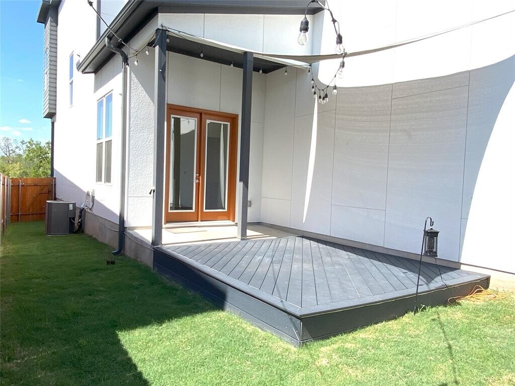 SPACIOUS, MODERN and PRACTICALLY NEW HOME (2021) in the vibrant Agave neighborhood of Austin, TX! This stunning home boasts a generous layout with open kitchen to living area, three spacious bedrooms, three full bathrooms, plus a studio and study with understairs storage! Enjoy wood look floors throughout complementing the open concept design that seamlessly connects the living room, dining area, study and studio. The kitchen features quartz countertops, Bosch stainless steel appliances, and Kitchen Aid refrigerator. Additionally, full size washer and dryer are included and remote controlled blinds. Prepare to relax in the upstairs primary suite, featuring a private balcony that overlooks the neighborhood and catch a glimpse the Austin skyline. Two huge walk-in closets, provide an abundance of storage space for all your belongings. The primary bathroom is truly a retreat, complete with a large glass shower, a soaking tub, and double vanities. The property offers a private backyard with patio and recent decking perfect for outdoor gatherings or simply unwinding after a long day. The convenience of a two-car garage, with Tesla charger, recent cabinetry and epoxy flooring, ensures that you'll always have a secure and easily accessible parking space. Easy access to downtown, major highways and the airport. MLS ID 6043207