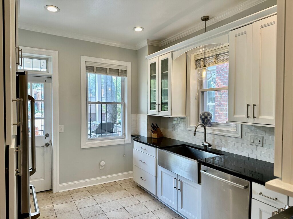 YES TO OFF-STREET PARKING! This gorgeous brownstone with perfect indoor and outdoor entertaining space has three comfortable bedrooms and two full baths! There is a very spacious basement den with a full bathroom, as well as Off street parking right behind your fully-fenced back yard. Enjoy both large decks this fall. Plus there's tons of pantry space, as well as plenty of well-designed closets, well-designed bathroom storage, and additional storage space. This townhome will make anyone feel at home!