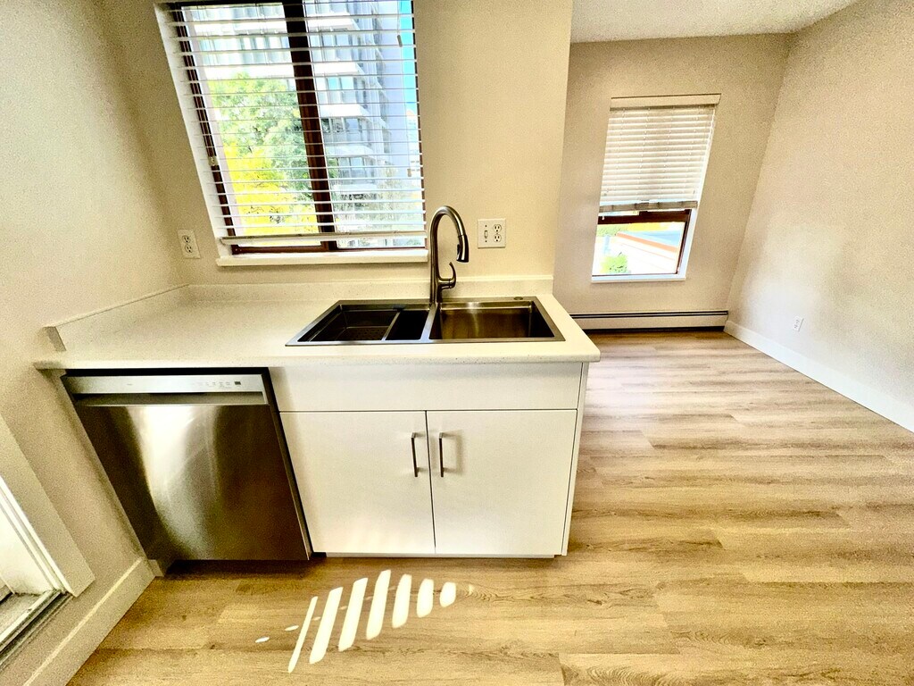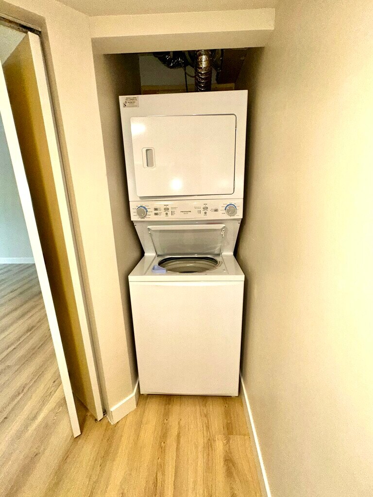 This 1-bedroom, 1-bathroom apartment at 612 Fifth Ave offers 986 square feet of living space. The living room provides ample room for relaxation and features easy access to the kitchen, which includes a dishwasher for convenience. The bedroom is spacious and well-suited for comfortable living. The bathroom is equipped with essential fixtures for daily use. Amenities include an elevator for easy access, a fitness center for exercise, and a pool for leisure. Additional features consist of a gated entrance for security and storage space for personal belongings. A washer and dryer are also included in the unit for added convenience.