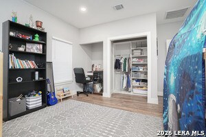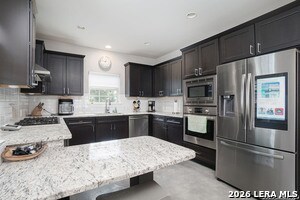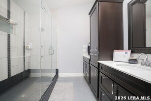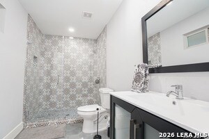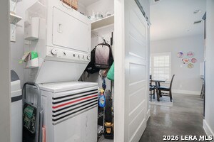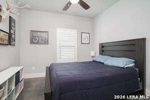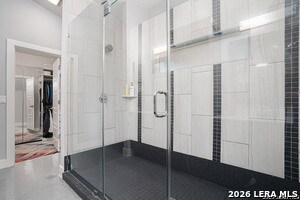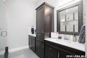 Stylish and thoughtfully designed, this modern home blends contemporary finishes with functional living spaces in one of San Antonio's vibrant urban neighborhoods near downtown, Southtown, and the River Walk. The open-concept layout features soaring ceilings, abundant natural light, plantation shutters, and a spacious living area with a tray ceiling and modern fan. The kitchen is both elegant and practical with dark custom cabinetry, stainless steel appliances, gas cooktop with vent hood, built-in oven and microwave, and beautiful granite countertops with an oversized island for casual dining. Generously sized bedrooms offer flexibility for guests, work, or hobbies, while the spacious primary suite includes a spa-like bathroom with a large glass walk-in shower, dual vanity, and an impressive walk-in closet with built-in organization. Multiple updated bathrooms add personality with stylish tile and designer touches. A convenient stacked laundry closet, polished concrete and wood-style flooring, and modern fixtures enhance everyday comfort. The expansive secondary living area with vaulted ceilings and a statement barn door provides the perfect space for a media room, playroom, or additional lounge, making this home ideal for entertaining and flexible living. Also offered furnished for $4500