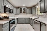 Welcome home to this beautifully updated, move-in ready property nestled on a quiet creek lot. Enjoy a bright, split-bedroom layout with a semi-open floor plan, new roof, and stylish new flooring throughout. The kitchen shines with quartz countertops, stainless appliances, and decorative backsplash, while the spa-like primary bath offers a soaking tub, frameless shower, and cozy wood-burning fireplace. Step outside to a peaceful backyard retreat with a new deck, greenbelt views, and fresh sod. Two fireplaces and an oversized garage complete this home.