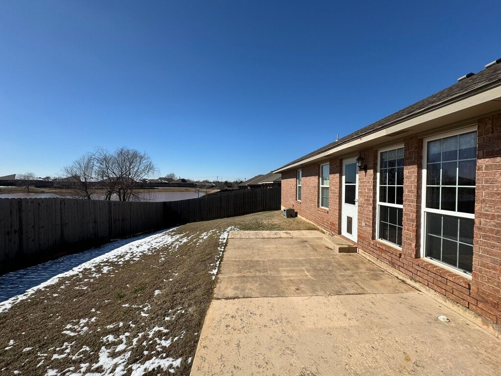 Wonderful 3 Bed 2 Bath home in popular Apple Valley addition of Moore, OK. Unwind in the backyard overlooking the HOA pond and fountain. Very open floor plan. 3 bedrooms including large master bedroom with walk-in closet, separate tub, and shower! Dining room open to living area with corner fireplace w/gas logs. Kitchen includes pantry and breakfast bar all open to living room. 2 car garage has inground storm shelter and good attic storage. Living room, hallway, and dining room have newer wood laminate flooring. For additional information on this property or to schedule a showing, please call our office at or call/text Devin at . For a complete list of all of our available rental properties, please visit our website at