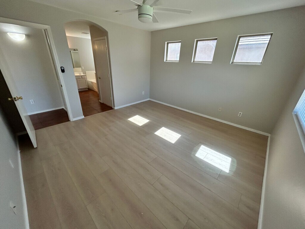 Welcome to your new home — a beautifully maintained single-level residence with a bright, open-concept design and NO CARPET throughout for easy maintenance. Large formal living room with plenty of windows to let natural light in and a private den off the living room that offers the perfect setup for a home office or study space. The kitchen features ample cabinetry, generous counter space, recessed lighting, with a dining area, and a convenient pantry for extra storage. The split floor plan offers the primary suite that includes a walk-in closet, dual-sink vanity, soaking tub, a walking shower and a toilet room. Two additional bedrooms with natural wood looking plank floors share a full hall bath. Additional features include custom light gray paint, a dedicated laundry room with washer/dryer hookups, a two-car garage, and a covered patio overlooking a spacious backyard. Pet-friendly for up to 2 spayed/neutered pets with a $350 fee per pet. We do not list on CRAIGSLIST OR FACEBOOK MARKETPLACE SO IF YOU SEE IT ON THERE IT IS A SCAM $50.00 non-refundable application fee covers per adult; age 18 or over. Full security deposit of $1795. Move in date must be between 7 & 30 days from lease signing/payment of security deposit. If moving in on or after the 5th then pro-rated current month rent is due as well as the following full month. All rent is due 7 days prior to move in.