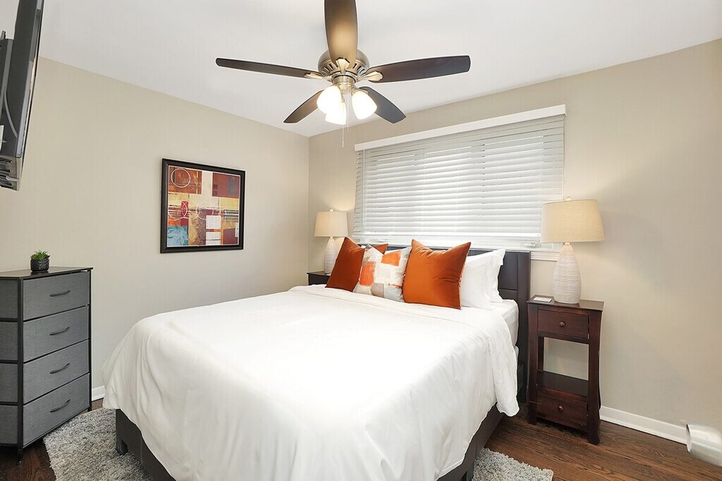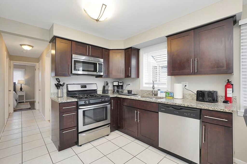 This 2000 SF renovated single-family home is conveniently located just 7 minutes from Midway Airport and 20 minutes from downtown. The property features 4 bedrooms and 2 bathrooms, with a master suite boasting a king-size bed and three additional bedrooms each offering a queen-size bed. The living room can accommodate an air mattress, providing a total of 4 beds. The kitchen is fully equipped with plenty of utensils, cooking spices, and oils, ensuring you feel at home during your stay. This home offers a 2-car garage and street parking, making it convenient for families and groups. It is children-friendly, equipped with a pack and play sleeper, a stroller, a high chair, and a booster seat. The property is also tech-savvy, featuring 5 LCD televisions with cable access in both English and Spanish, Netflix and Prime Video access (with your login), up to 300 MBPS internet speed with an ethernet hard line, Wi-Fi throughout the home, a 55" TV in the living area, a 40" TV in the bedrooms, and a sound bar in the living room. The property includes premium amenities such as over 10 cooking spices and 3 types of cooking oils for a delightful meal experience. Additionally, there is an arcade cabinet with 2000 classic games for entertainment. Located in a prime area, this home is just a short drive from Midway Airport and downtown, making it ideal for both business and leisure travelers. The neighborhood offers a variety of attractions and amenities to explore during your stay. The property has a no-smoking and no-parties policy. Check-in requires submission of ID and security fees, and failure to do so will result in no refunds and no access to the property. Fees may vary for long-term stays.