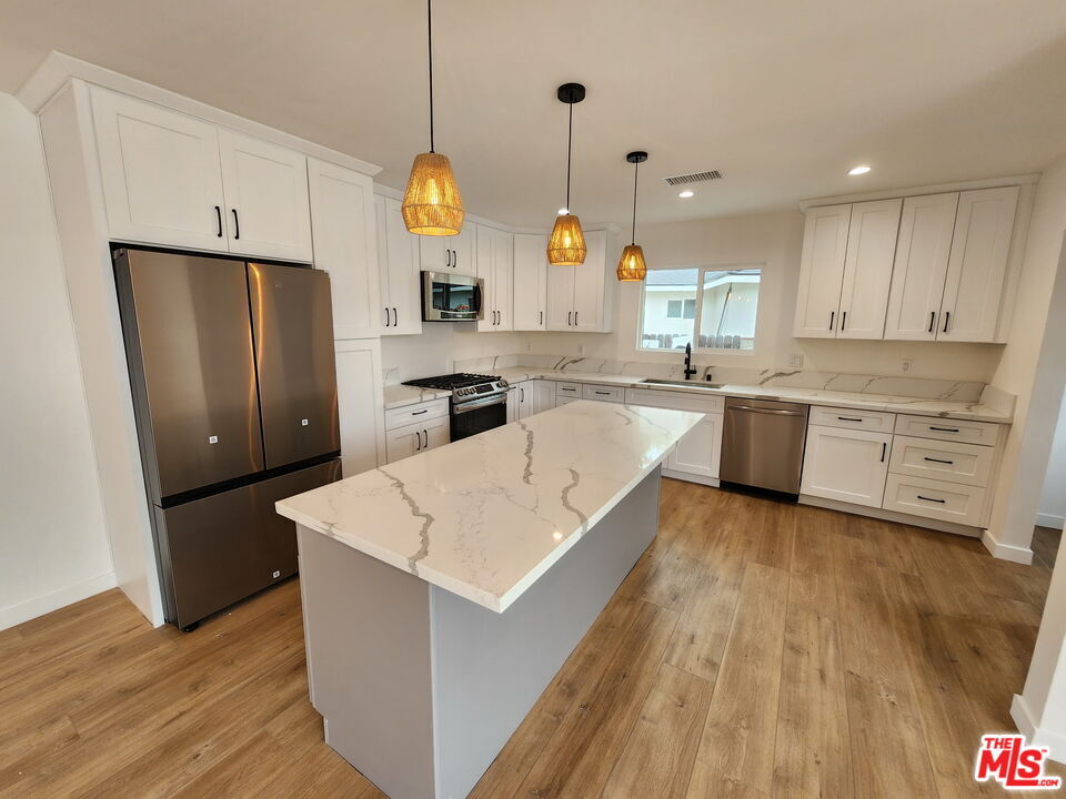 Totally remodeled 4 br and 3 ba single-family house providing a comfortable and private living space. Nestled in a peaceful neighborhood, this home offers aserene environment that promotes relaxation and tranquility. The open-plan design creates a seamless flow. The kitchen is a standout feature, boasting brand-new stainlesssteel appliances and generous counter space, making it a practical and enjoyable space for cooking and meal preparation. The master bedroom boasts a spacious walk-incloset, offering plenty of storage for your wardrobe and personal items. The master bathroom exudes elegance, providing a tranquil retreat where you can unwind andrejuvenate. Step outside into the large backyard, providing ample room for outdoor activities and possibilities for creating your own outdoor nest. You'll appreciate theconvenience of a closed garage, ensuring secure parking and protection from the elements. Additionally, an outdoor storage room offers additional space to keep yourbelongings organized. This remodeled single-family house is a wonderful blend of style and functionality, offering a comfortable and inviting living space for you and yourfamily. Don't miss the opportunity to make this house your new home. MLS# 26662471