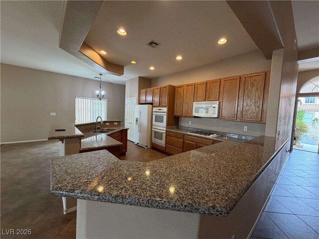 Spacious single story home located in the northwest part of the valley. Open floorplan, vaulted ceilings. 4 bedrooms & 3 car garage!! Over sized master suite with sitting area, has slider going to back yard. Open kitchen with granite counters, double ovens, pantry & breakfast bar. Large family room, dining area & separate living room. Huge back yard with desert landscaping. Rent includes sewer/trash/hvac filters.