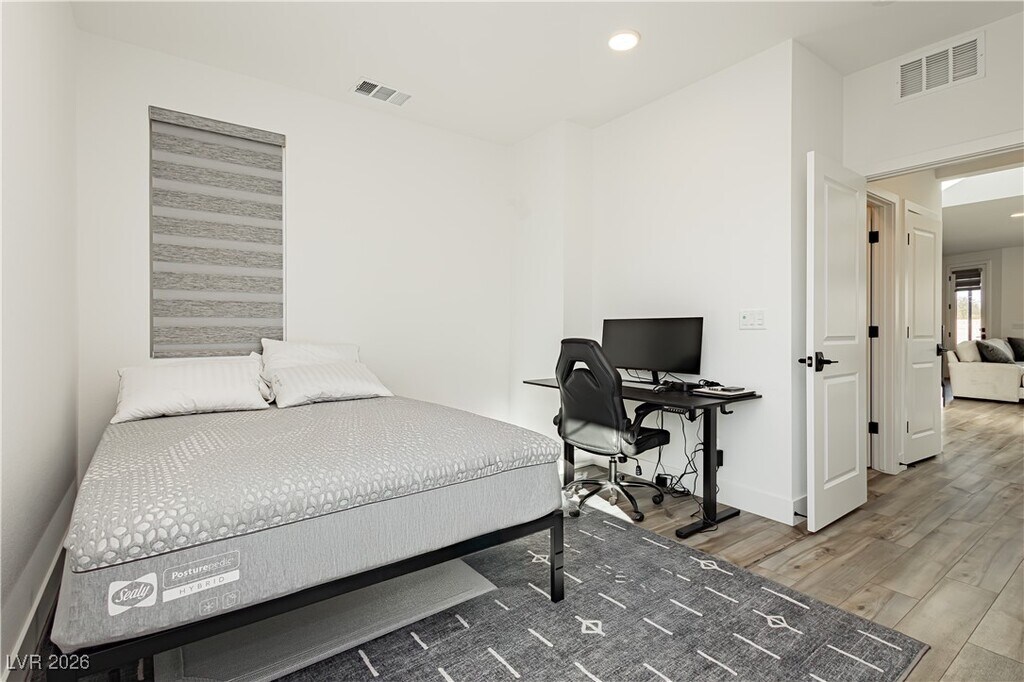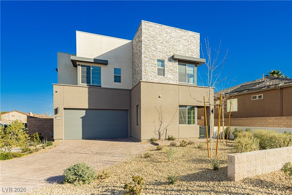 Discover modern living in this stunning nearly-new home near desirable Summerlin South! Built in 2024, this beautifully designed residence offers 4 bedrooms, 3 baths, and 2,417 sq. ft. of thoughtfully arranged living space. Bright and open, the heart of the home features a spacious kitchen with stylish cabinetry and seamless flow into the inviting living and dining areas, perfect for everyday living and entertaining. A versatile downstairs bedroom adds convenience and flexibility. Upstairs, unwind in the generous primary suite and enjoy additional well-appointed bedrooms and a loft space ideal for a home office or lounge. Set on a premium lot with plenty of outdoor space, including a massive front patio/yard, this home provides comfort, style, and modern finishes throughout. Located in a vibrant community close to parks, shopping, and all the unique dining that the SW valley has to offer. It’s the perfect place to call home!
