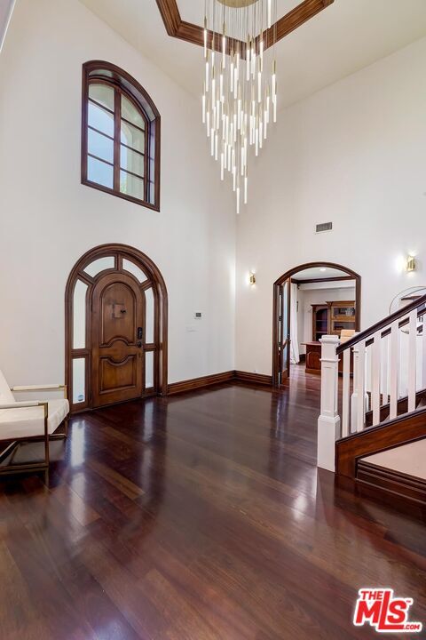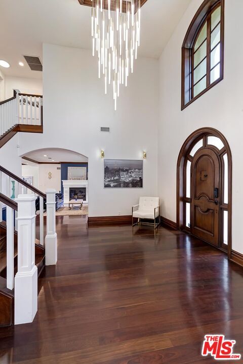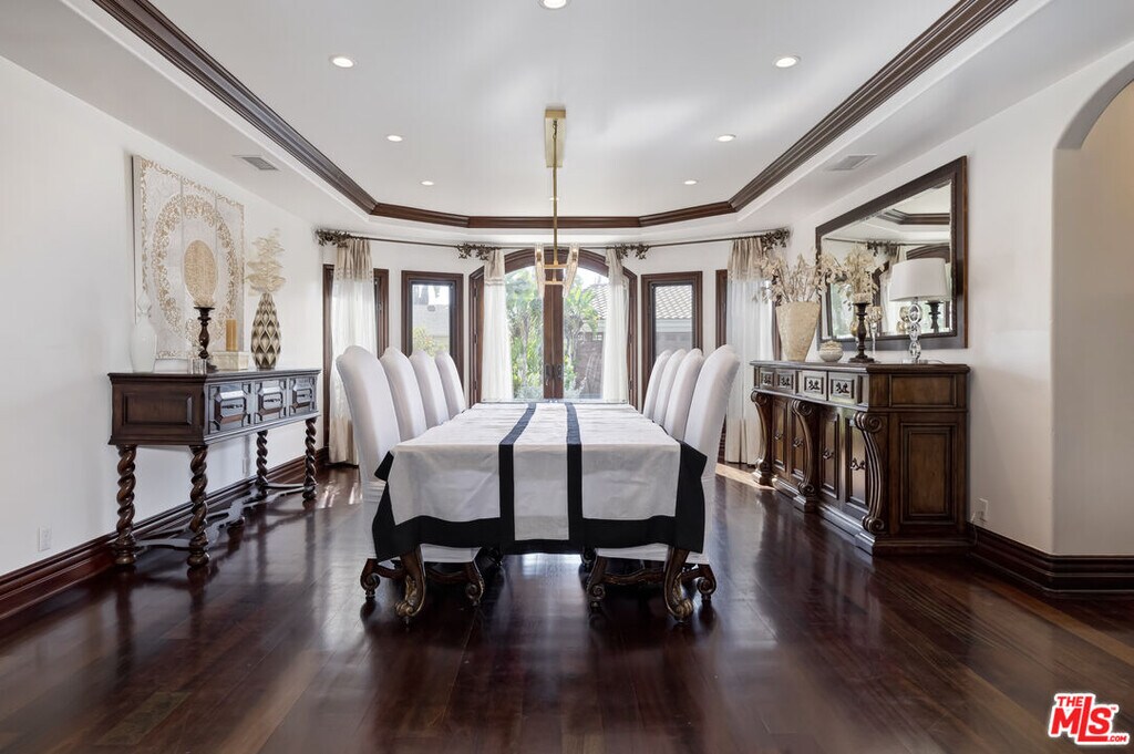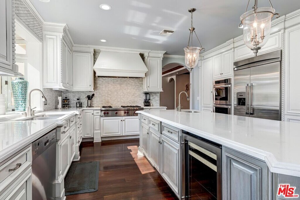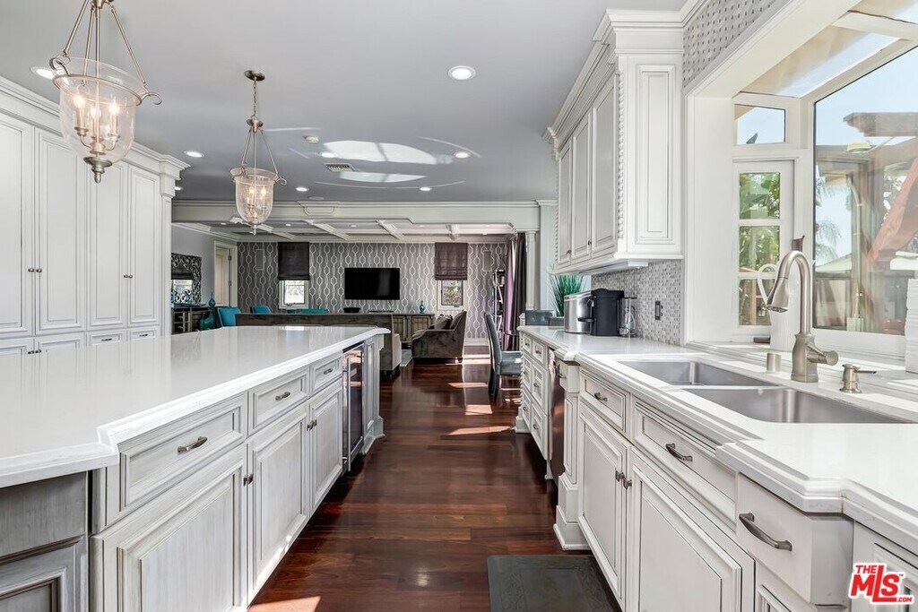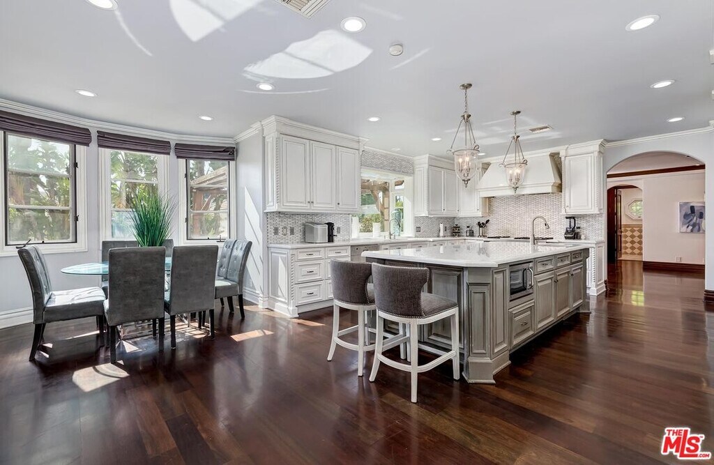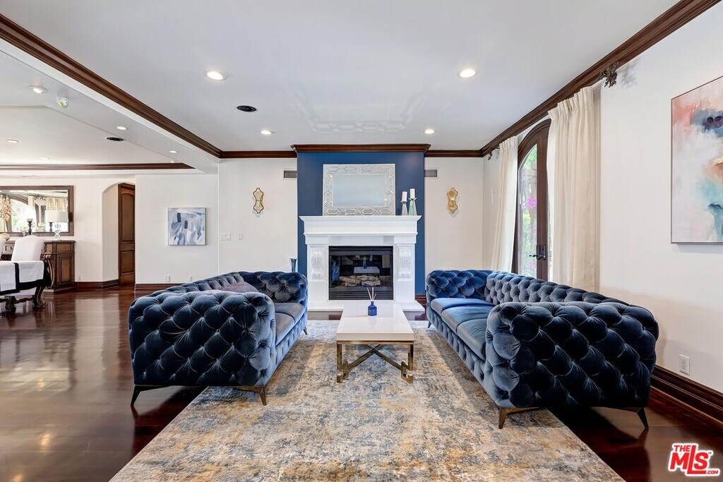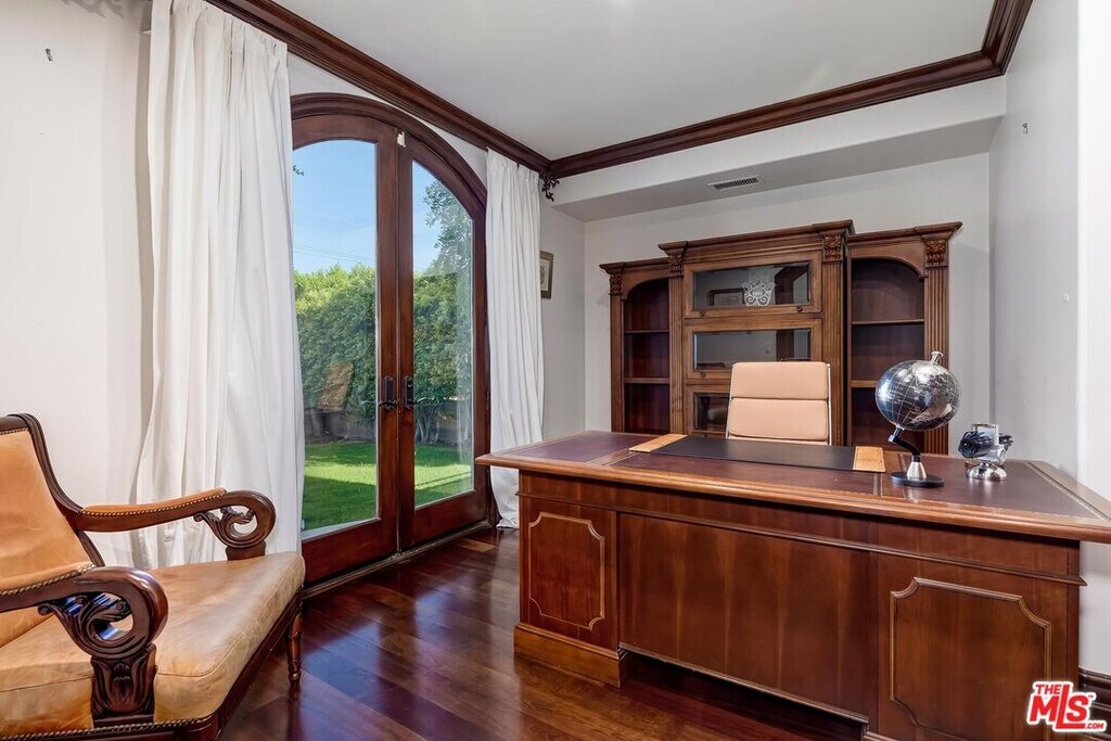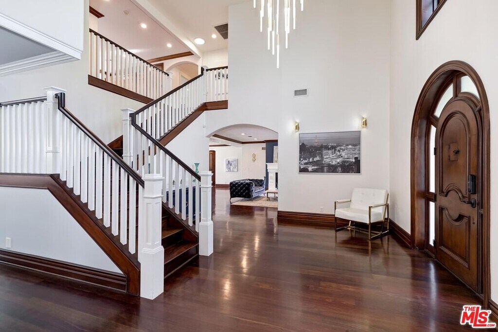 A luxurious & unique Fully Furnished Mediterranean Estate with a touch of modern living, unlike any other, with top-of-the-line privacy and security throughout. A sweeping staircase with ultra-high ceilings, a mix of wood & stone floors welcome you to the warm formal living room with a custom fireplace adjacent to a beautiful dining room with large picture windows for ample natural light. Beautiful stone floors guide you to a warm & modern family room with fireplace and wooden built-ins. Across is the awe-inspiring kitchen with a beautiful island and breakfast bar, designer stainless steel appliances, breakfast nook, and all conveniences for the gourmet chef. Upstairs, the primary suite showcases a fireplace, incredible closets, and a large balcony with views of the backyard oasis. The large spa-like master bath boasts soaring ceilings, large rain shower, dual vanity, and a soaking tub. The sprawling grounds feature a sparkling pool, spa with waterfall, BBQ center, Sports Court, spacious entertainment area and a pool cabana. Close to houses of worship, NOHO WEST shopping center, dining and freeway accessible near 170 and 101. A true one-of-a-kind estate. Don't let this one get away! MLS# 25630905