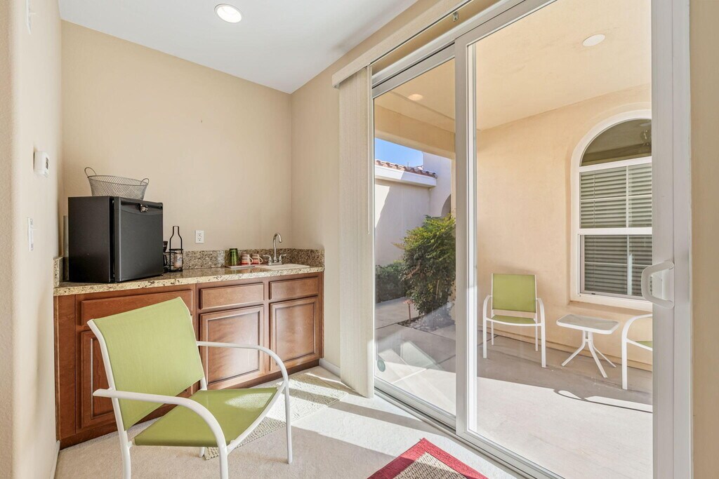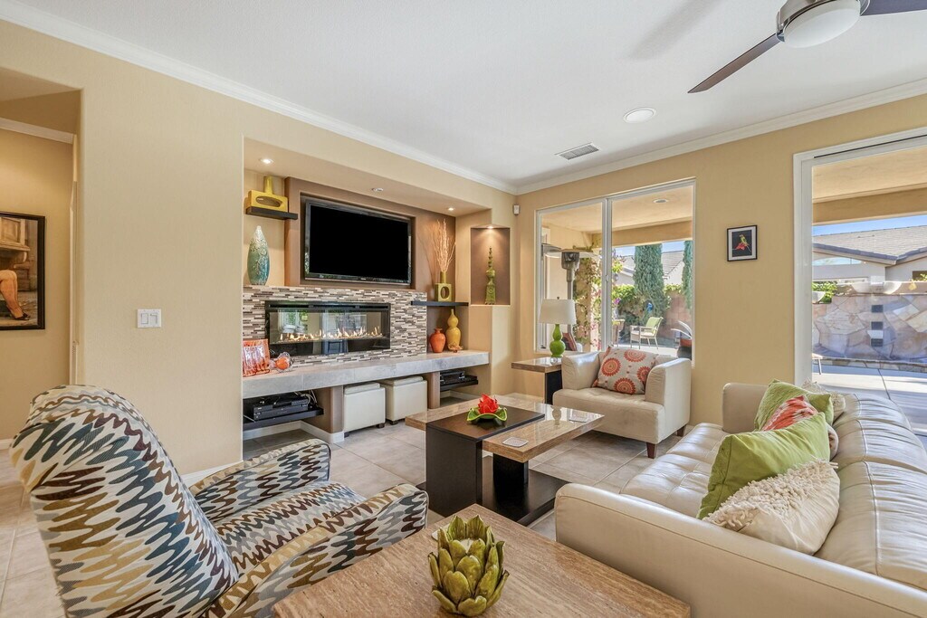 Home is available now until Dec. 29,2026. Home is leased Jan Feb March 2027. Welcome to The Swanky Palms- where Old Hollywood glamour meets the sun-drenched luxury of La Quinta's coveted Trilogy community. Step into a world where Frank Sinatra might have swirled a martini and Marilyn Monroe could have relaxed poolside,surrounded by the vintage-cool style and every modern amenity your heart desires. This stunning retreat is dripping in mid century charm. with curated detailed that transport you straight to the golden age of Palm Springs - all while wrapping you in the comforts of home including a state of art surround sound system worthy of a Rat Pack after party. As a special bonus,your own private casita awaits - a chic hideaway complete with its own bedrooms,bathroom,breakfast bar with mini refrigerator and coffee maker for guests who deserve their own slice of swanky. There is a large primary bedroom and 2nd bedroom in the main house with lots of space to make yourself at home. Cruise the gorgeous Trilogy La Quinta community with your very own included golf cart,because at The Swanky Palms,everything is done in style. And when you are ready to explore beyond your home,an extraordinary world of resort-style amenities awaits - championship golf,tennis and pickleball courts,swim lanes,a stunning resort pool and spa,a full service spa and fitness center,and a breathtaking bar and restaurant,all just steps away. Whether you are sipping a dirty martini at sunset or soaking in the warm desert air,this is more than rental,it's an experience! MLS # 219146715
