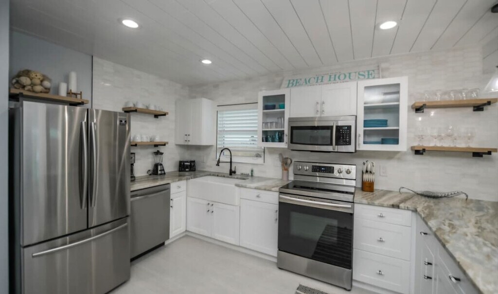Welcome to Anna Maria Island! Feel at home in this beautifully appointed 3-bedroom home with 2.5 bathrooms, a short walk from the famous Bean Point Beach. This home features a well-equipped kitchen with dinner and cookware, a drip coffee machine, a Keurig, and a gas BBQ. Beach gear and beach towels are provided for your convenience. Enjoy the heated pool and hot tub, relax on the pool deck, or mingle on the front patio. Smart TVs are available for you to log into your streaming networks. Outdoor seating and lounge chairs are provided. The spa party push may take a few minutes to turn on and 45 minutes to fully heat. Surrounded by beaches, this home is a 5-minute walk to the famous Bean Point Beach in a quiet neighborhood. You are vacationing in a residential area. Please be a good neighbor by keeping the noise to a respectful level during the day and night. Excessive and unreasonable noise can deprive neighbors of the peaceful enjoyment of their private property. Cars must be parked off-street. [SI]