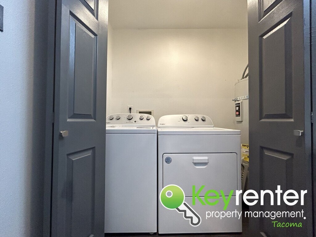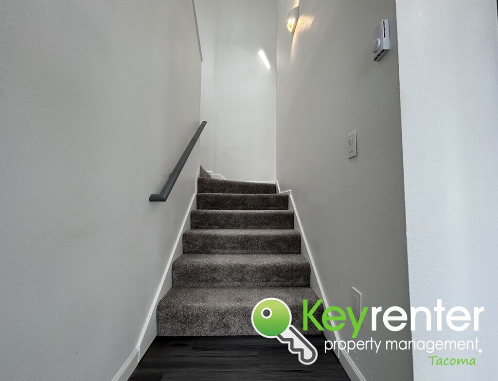 Come visit this recently renovated 2-bedroom, 2 -bathroom duplex in near downtown Tacoma! As you enter the ground floor common area, you'll notice a private 2-car garage conveniently located to your right, providing ample storage space and personal parking. Moving upstairs, you'll discover the beautifully remodeled unit featuring luxurious LVP flooring throughout the open concept living room and kitchen. Sunlight streams in through the windows, creating a bright and inviting atmosphere. Additionally, the balcony offers peeks of downtown and the Tacoma Dome. The kitchen boasts top-notch stainless-steel appliances and elegant granite countertops, making meal preparation a breeze. For the convenience of your guests, there is a well-appointed ¾ bathroom on this level. Continuing upstairs, you'll find two carpeted bedrooms and a full bathroom, complete with in-unit laundry machines. The larger bedroom impresses with a spacious walk-in closet and plenty of room to relax. The secondary bedroom is equally roomy and ideal for a roommate or children's room. This remarkable condo is a rare gem, situated so close to downtown. Don't miss out on the opportunity to schedule your viewing today! HOME FEATURES: • Home Video Tour: • Recently Remodeled • Stainless Steel Appliances • LVP Flooring • Granite CounterTops • Walk-in Closet • On-Site Laundry • Balcony • Private Garage COMMUNITY FEATURES: • 5 Minutes to I5 • 5 Minutes to Downtown Tacoma offering Museums, Shopping and Fun • 15 Minutes from JBLM • 5 Minutes from Tacoma Mall • Short drive to local schools • Local parks nearby THE BASICS: • Lease Term: 6 or 12 month lease available • Pet Policy: Only Dogs Allowed • Tenants to be responsible for all utilities, • Tenants to be responsible for a fixed rate of $65 for water/sewer/surface water. • Tenants to be responsible for applying ice melt in the winter to the alleyway to ensure safe entry and exit and prevent water lines in the alley from freezing. IMPORTANT THINGS YOU SHOULD KNOW: • No smoking on the premises • Application processing time is 3-6 business days. • Please review Keyrenter's Application Criteria prior to applying. • $50 N/R Application Fee per applicant 18 or older • $30/Monthly Rental Admin Fee • Renters & $100k General Limited Liability Insurance Required • Security Deposit: $1,850 • $50 monthly pet fee + 1x $300 additional N/R Fee Per Pet (if applicable) DISCLAIMER: All information deemed reliable but not guaranteed and are subject to change. Keyrenter DOES NOT advertise on Craigslist or Facebook MarketPlace. Nor do we ask for payment to view our properties to protect yourself from scammers!