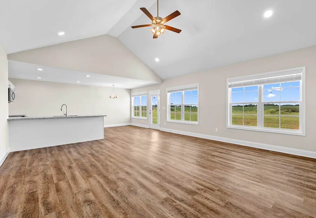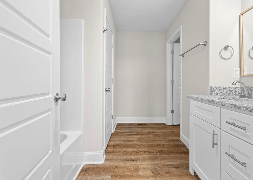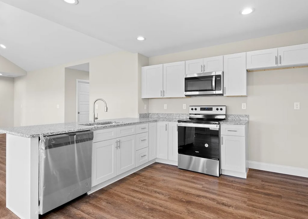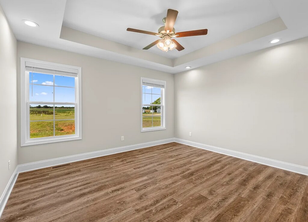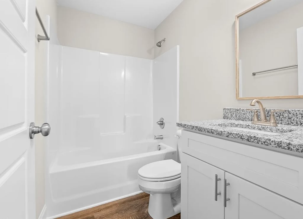 Granite countertops Stainless steel appliances Vaulted and tray ceilings Double vanity with tub/shower combo in main bath Laminate flooring throughout Single family home with attached garage