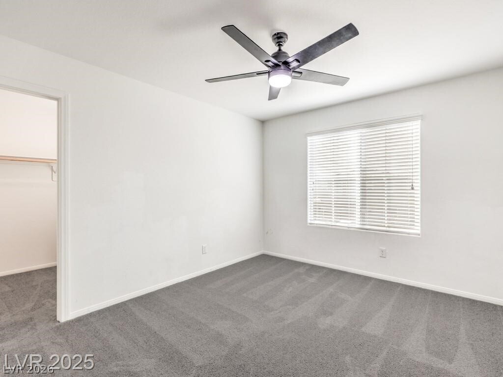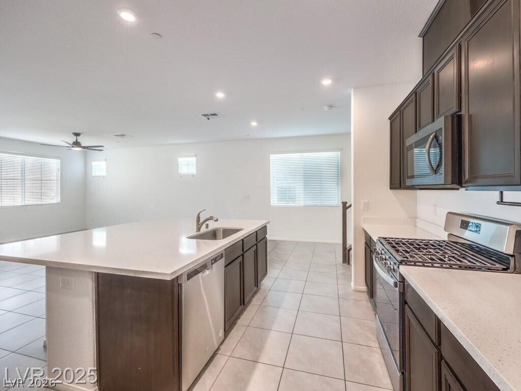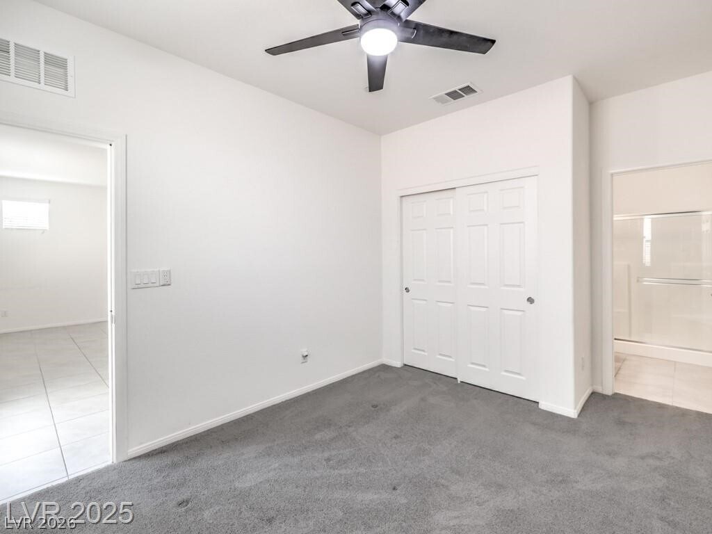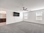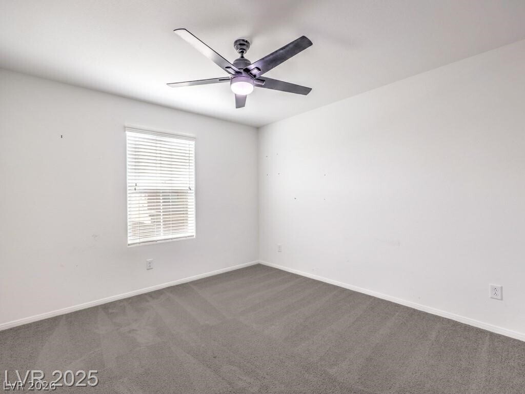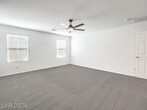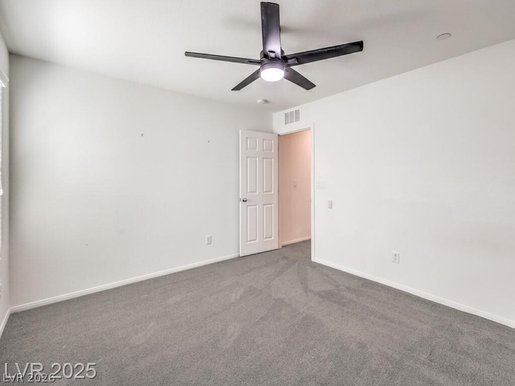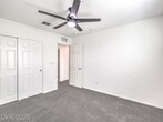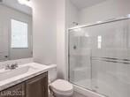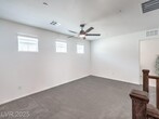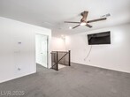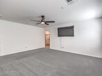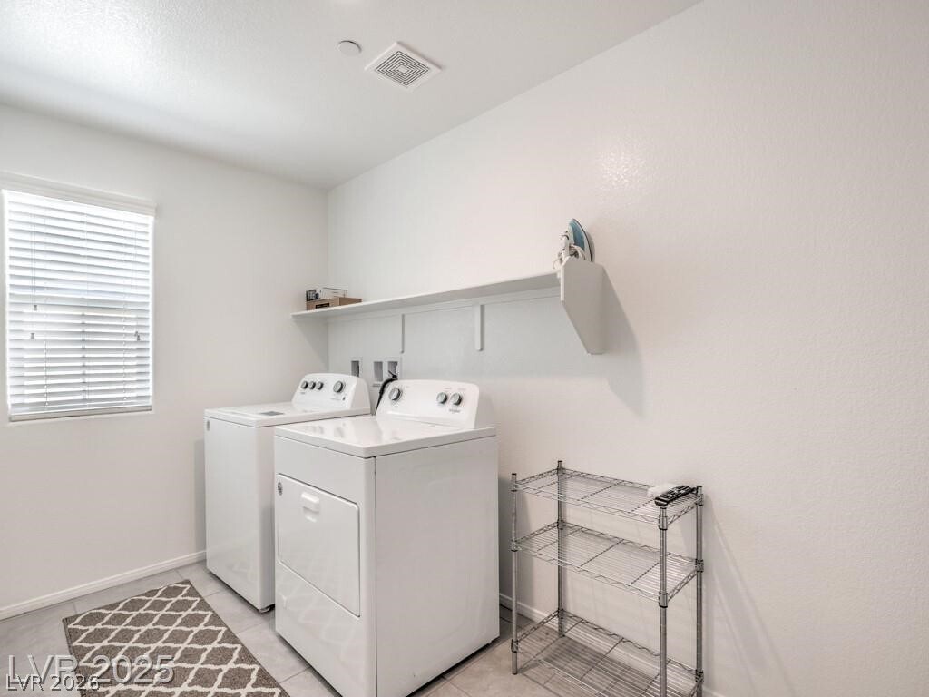 This bright 2,719 sq ft cul-de-sac home has terrific curb appeal and an open-concept layout! The stunning kitchen features a huge quartz island, stainless appliances, and walk-in pantry. Tile floors on the first level. Downstairs: guest bedroom with 3/4 bath + separate half bath — perfect for entertaining! Upstairs: spacious loft, 3 more bedrooms, full bath, and primary suite with sitting area, dual sinks, and walk-in shower. Upstairs laundry with washer/dryer included. Low-maintenance backyard with synthetic grass and paver patio. Close to shopping, dining, parks, schools & both Nellis & Creech AFB. Gated community!