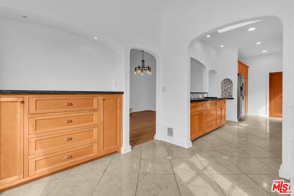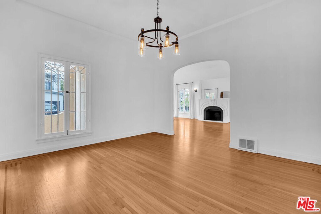 REMODELED CHARACTER SPANISH WITH POOL, SPA AND BONUS ROOM/FOURTH BEDROOM IN BEVERLY GROVE. Ideally located on one of the nicest streets in this highly sought after neighborhood, enter this beautiful home through a front patio into a grand living room with barrel ceiling, picture window and decorative fireplace. A formal dining room adjoins an open, redesigned kitchen with stainless steel appliances, separate breakfast room, skylight, and side entrance. There are three generous bedrooms as well as a large bonus room through the primary bedroom that could serve as a fourth bedroom featuring French doors leading to a private backyard with a large, heated pool, spa and a nicely finished garage/flexible space. Additional features include central AC, remodeled main bath with soaking tub and shower, recessed lighting, gated driveway, and period details throughout including inlaid floors, stenciled walls, full size front loading washer and dryer, firepit and outdoor kitchen. MLS# 26670369