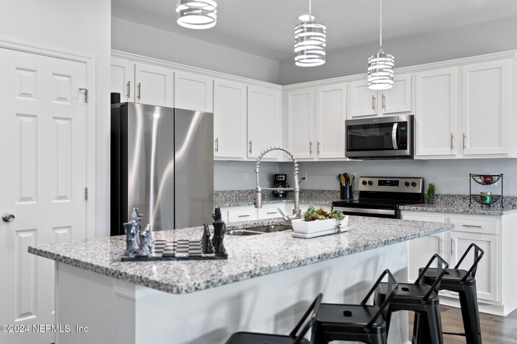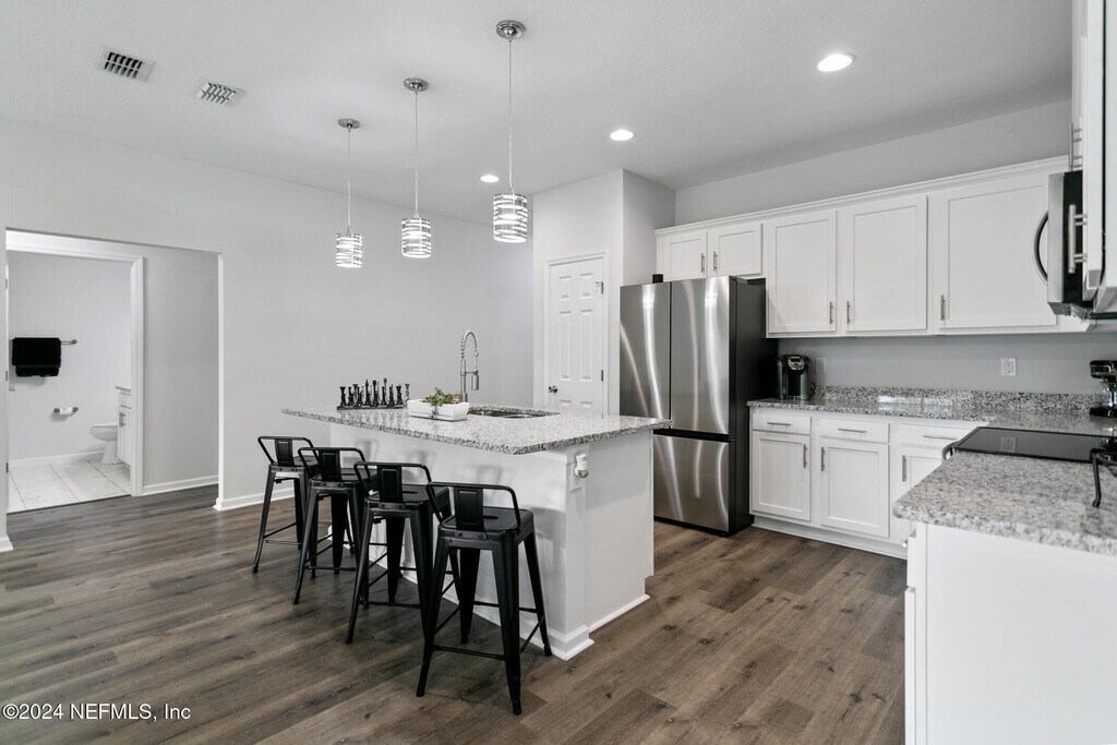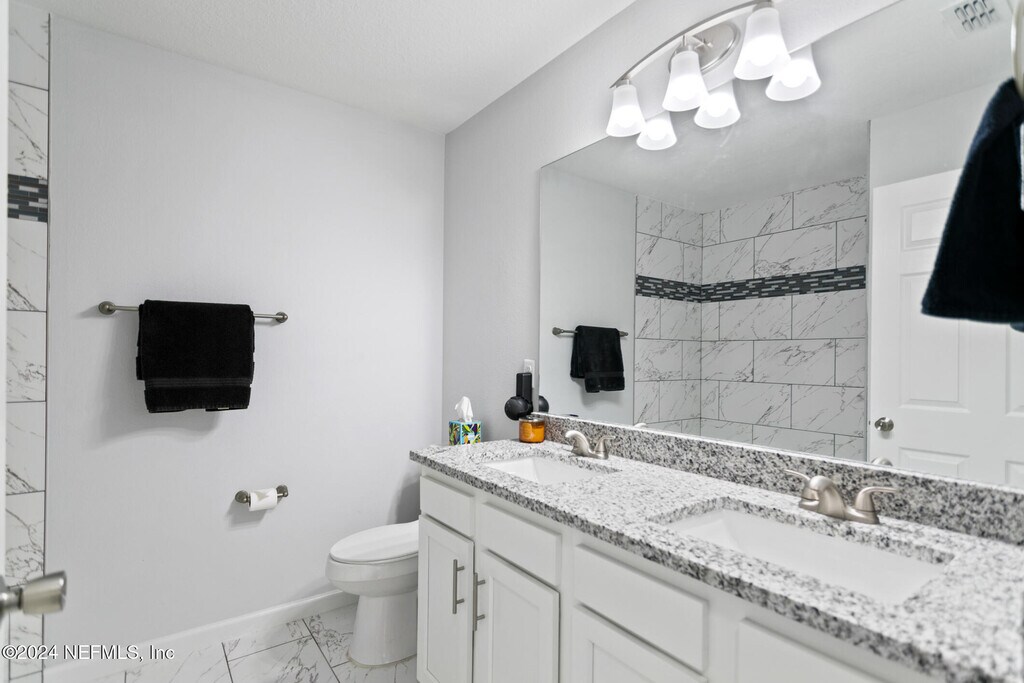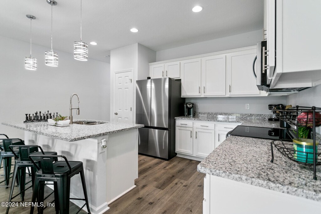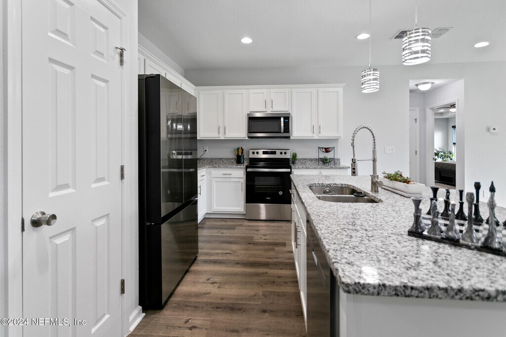 Experience this exceptional,nearly new home nestled in the desirable Ortega Farms neighborhood! Offering over 1,800 sq. ft. of thoughtfully designed living space,this 4-bedroom,2-bath residence features a sought-after split floor plan that blends functionality with modern comfort.Inside,you'll find elegant vinyl plank flooring throughout,a formal dining room,and a spacious living areaperfect for gatherings and everyday living. The chef-inspired kitchen is a true highlight,featuring granite countertops,stainless steel appliances,recessed and pendant lighting,and an open-concept design that flows seamlessly into the living room.Both bathrooms are beautifully upgraded with granite countertops,sleek tile flooring,and fully tiled showers for a spa-like feel. Additional upgrades include custom-installed blinds throughout and a whole-home water softener system,adding both comfort and convenience. MLS# 2113720