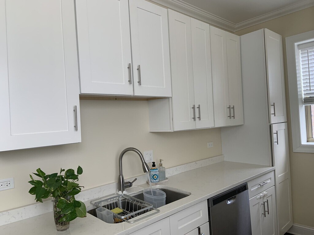 Property Id: 2453568 Completely REHABBED 2 bedroom, 1 bath unit. 3rd floor, great closet space, NEW floors and kitchen, ceiling fans, secured bike and unit storage space, NEW in unit washer/dryer, hardwood floors, quartz countertops, NEW stainless steel appliances. Secure vintage courtyard building close to Peterson, and Devon Ave bus, and NEW Metra Station (Peterson). Steps to Target store.
