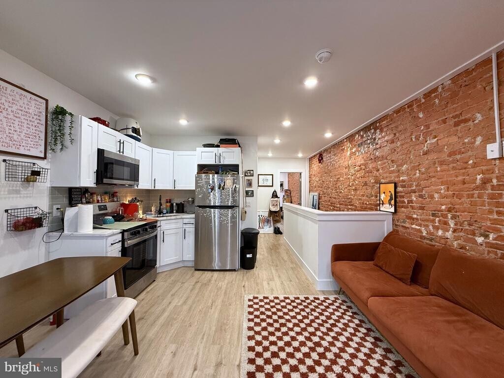 Welcome to this beautifully updated 1-bedroom, 1-bath second-floor unit in the heart of Cobbs Creek. This apartment features an open-concept layout highlighted by a stylish brick accent wall and modern finishes throughout. Enjoy the convenience of an in-unit washer and dryer, central air, and access to a shared front porch—perfect for relaxing outdoors. Ideally located just 3 blocks from the 60th Street Station (market - Frankford Line) for an easy commute, 4 blocks from The Fresh Grocer for everyday shopping, and only 1 block from Cobbs Creek Park, offering green space, trails, and recreation right at your doorstep. Please note: No basement access. First month’s rent and security deposit due at lease signing.