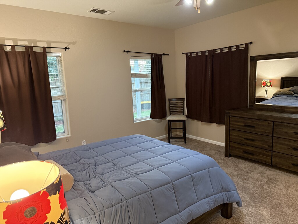 Single family home in safe, quiet neighborhood. This is a 4 bedroom with 2 baths house. I’m only renting out the master bedroom which comes with the master bath and a master closet. Rent includes all utilities. I prefer a month or two rental duration. The other three rooms are getting renovated, but could make one or two rooms available, depending on the applicant who apply, of course rent would increase if more rooms are needed. It has a refrigerator, stove, dishwasher, washer and dryer. Includes all utilities with the rent payment.