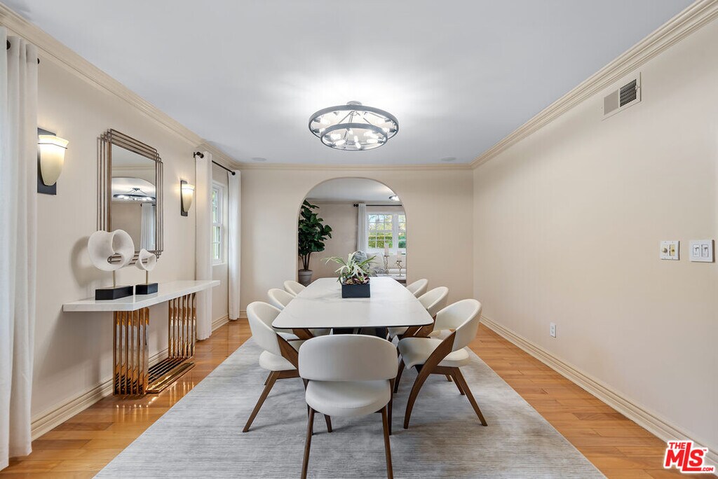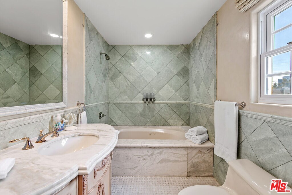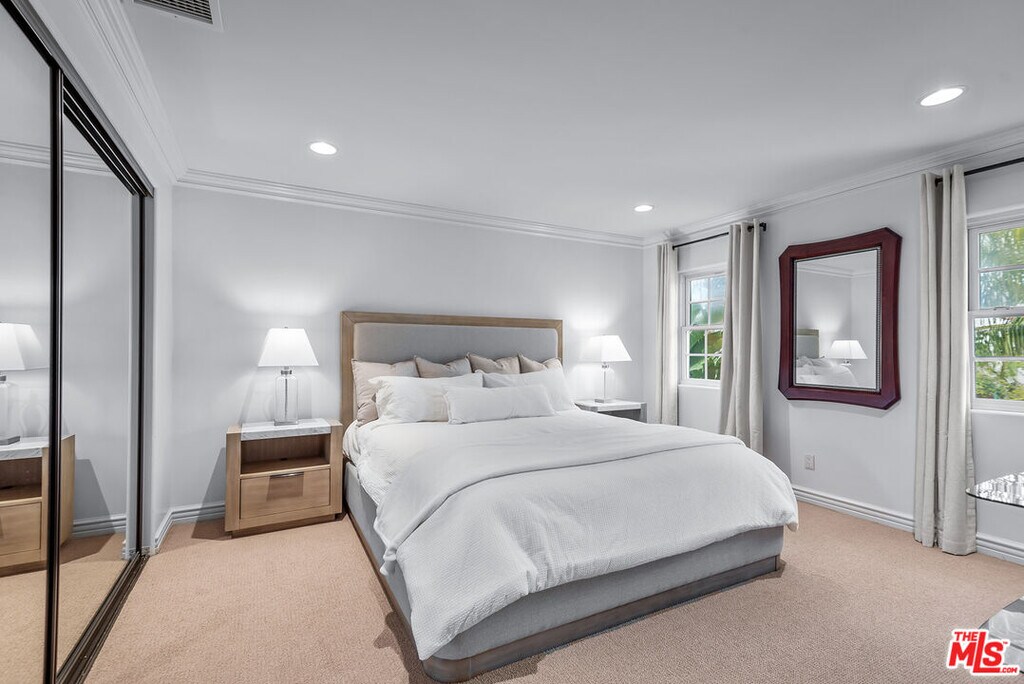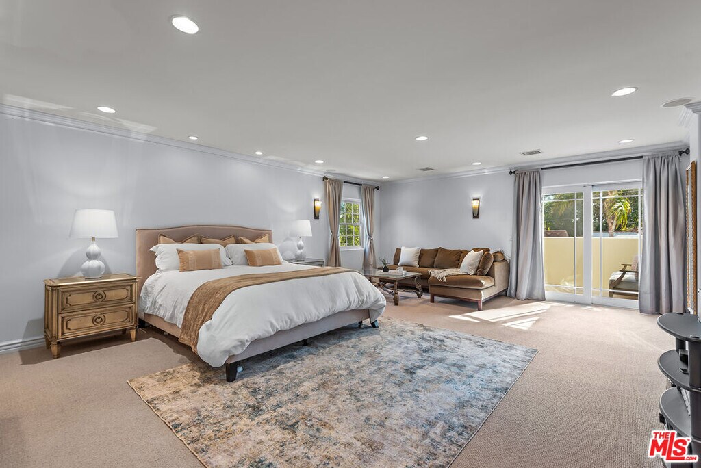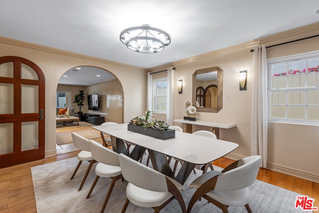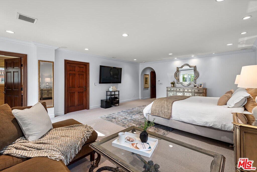 Lovely Mediterranean available furnished located in the Hancock Park Elementary School district. This well appointed 4 bed + 5 bath home offers living room with fireplace, formal dining and chef's gourmet kitchen equipped with top-of-the-line appliances and oversized center island with prep sink. Inviting primary retreat featuring sitting area, custom walk-in closet, private balcony and luxurious bath with separate shower and tub with jets. 3 additional en suite bedrooms upstairs. Spacious family room seamlessly joins both formal dining and breakfast room which leads to covered patio - perfect for entertaining! Great outdoor space highlighted by sparkling pool with fountains, Jacuzzi spa, large cabana with TV and outdoor kitchen with BBQ and fridge. AV features include surround sound systems in primary and family rooms, ceiling speakers throughout, and 6 plasma TVs. Long private driveway and attached carport accommodating multiple cars. Internet, pool and gardener included with rent. MLS# 25603413