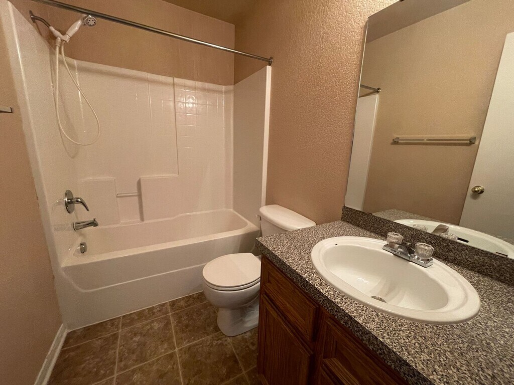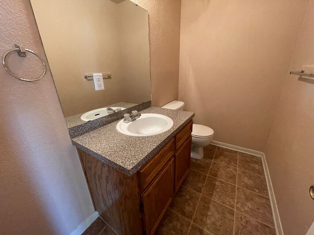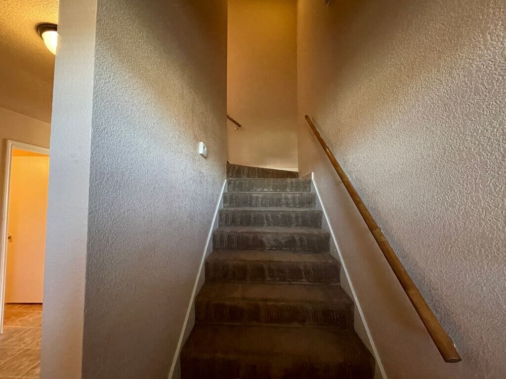 View 360 virtual tour: 3 bed 2.5 bath two-story townhome located in Copperas Cove, Texas. This functional layout features a mix of vinyl and carpet flooring, with the first floor including a foyer and a convenient half bath for guests. The kitchen has a mix of stainless and white appliances, breakfast bar, and formal dining area. All three bedrooms are located upstairs, each carpeted for comfort. The primary bedroom includes an ensuite bathroom with a double vanity, while the secondary bedrooms share a full bath. Additional features include an attached 1-car garage, extra driveway parking, and a fenced-in backyard. This is a pet-friendly home.
