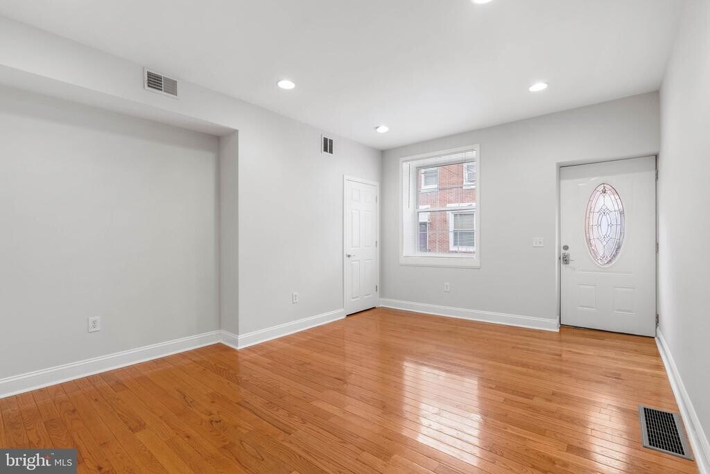 Handsome two-story brick front home with 2 bedrooms and 1 bath. This property is a great value on a lovely block! On the first floor you’ll find a wide open living room with wood floors, closet & large window. The separate dining room has a tile floor & moldings. There is a custom galley style kitchen with granite counters, stainless steel appliances, recessed lighting and French-door out to yard. The second floor features a front bedroom with ceiling fan & double-closet. Spacious, 4-piece bath with Jacuzzi tub. The rear bedroom has wood floors & 2 windows. The basement is partially finished and super clean with painted walls, carpeting, mechanicals, glass block windows and hard-wired smoke detectors. Convenient to the Center City business district, great shopping, restaurants, public transportation and parks.