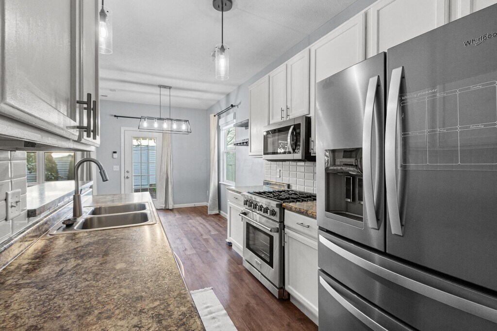 Beautifully updated 3 bedroom,2.5 bath home for rent. Centrally located in the desirable Upper Arlington neighborhood,this home features a generous size open floor plan. The entry way opens into a multi-purpose room,perfect for a formal dining room or office. A half bath is just off the entry way with an updated vanity and fixtures. Step into the large living room with a cozy,corner fireplace with custom trim and stone. The kitchen overlooks the living room,making it perfect for an entertaining space,and features an eat in area. Freshly painted cabinets and stainless appliances complete the space. Upstairs you will find a generous size primary suite with a vaulted ceiling. The completely renovated ensuite,has both a shower and soaking tub. A large,walk in closet gives ample storage space. Two additional bedrooms and another fully renovated bath complete the second story. Outside,is a perfectly,secluded patio space and the detached 2 car garage. Front lawn care included.