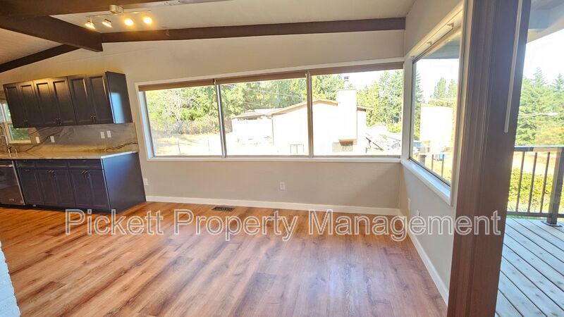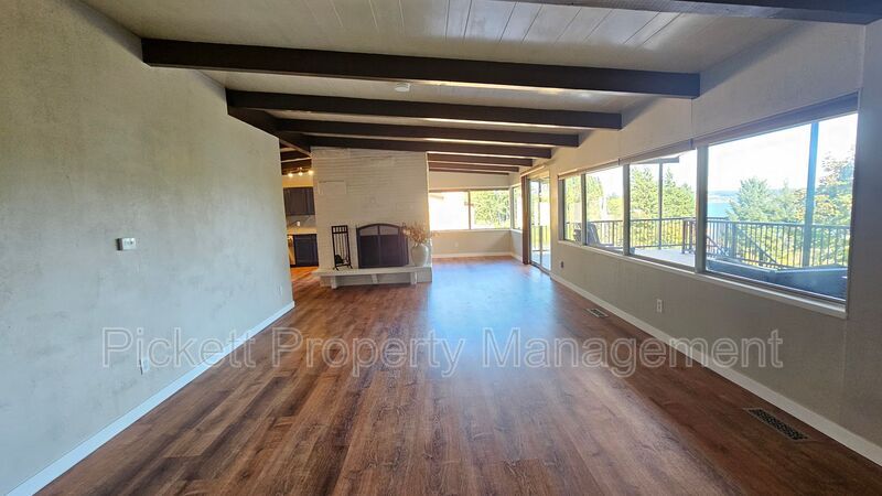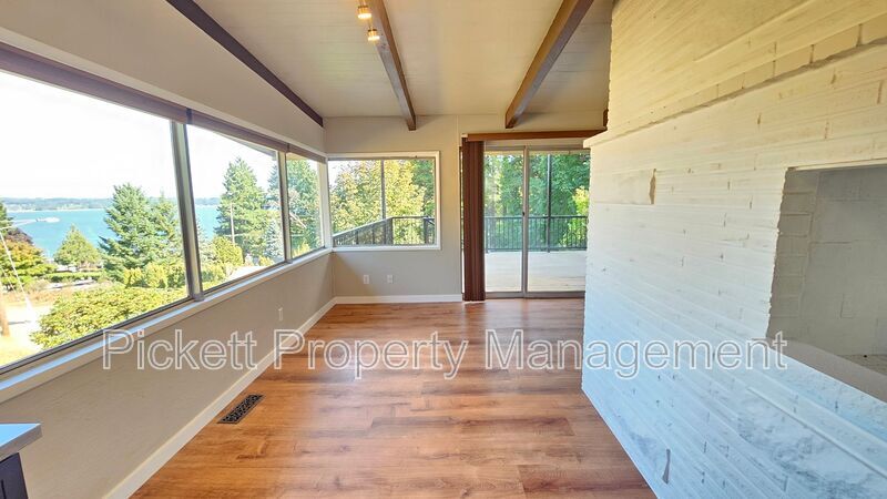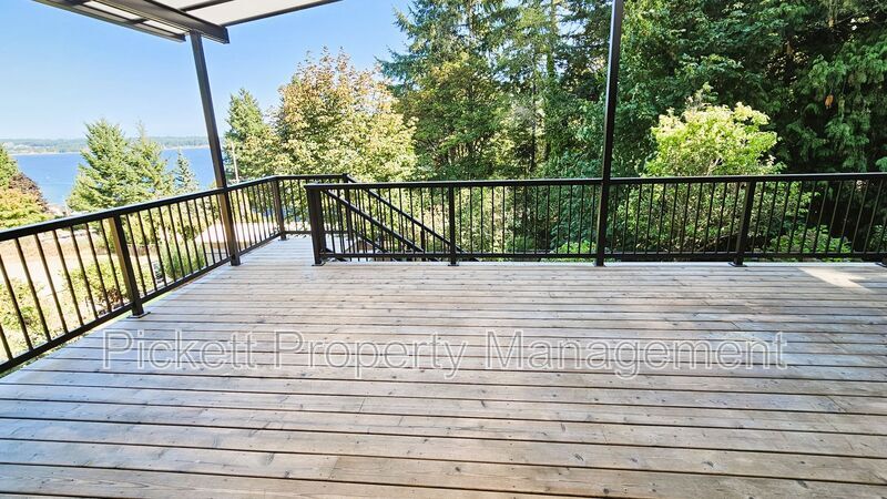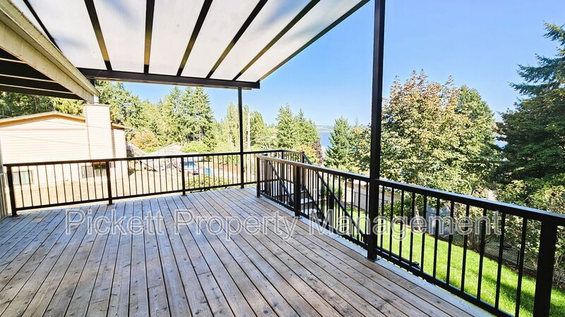 Contemporary 4 bedroom, 3.5 bathroom home with water view of the bay! This house is perfectly set up for multigenerational living with the upstairs boasting a living area with vaulted ceilings, wood burning fireplace, and a must see updated kitchen with stainless steel appliances, wine refrigerator and farm sink. Access to the large, covered deck is off of the dining room, which is perfect for entertaining, or to enjoy a beautiful sunrise or the fireworks from Whaling Days! There are 3 bedrooms and 2 bathrooms on this floor. The lower area has a mother-in-law suite with its own entrance, kitchen, and handicap accessible bath. Washer and dryer are provided for your convenience. There is a shed/shop and carport. The large, circular driveway is convenient for parking. Home is situated on a dead-end street, off of the main road. Home has oil forced air heating and is on a septic, so tenant will pay and additional $25 monthly septic fee in lieu of sewer. Close to downtown Silverdale with shopping and dining, Naval bases and hospital, and the bus line. Cats and medium-sized dogs are welcome with approved third-party pet screening, additional $500 deposit, and $35 monthly pet rent, per pet. All Pickett Property Management residents are enrolled in the Resident Benefits Package (RBP)! For just $35 per month, residents can enjoy exclusive benefits including credit building to boost their credit score with timely rent payments, up to $1M in Identity Theft Protection, our top-notch resident rewards program, and much more! Residents can enhance their RBP by adding rental insurance that meets the Pickett requirements plus more for a flat $11.95 per month, and on-demand pest control for an additional $17/month. Pickett Property Management does not accept comprehensive reusable reports. Amenities: electric stove, dishwasher, deck, microwave, refrigerator, wood burning fireplace, storage shed, oil forced air heat, carport, water view, pellet stove, fenced backyard, garbage disposal, off-street parking