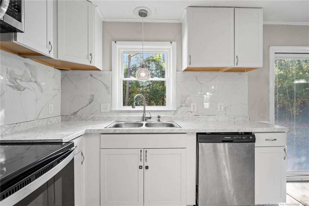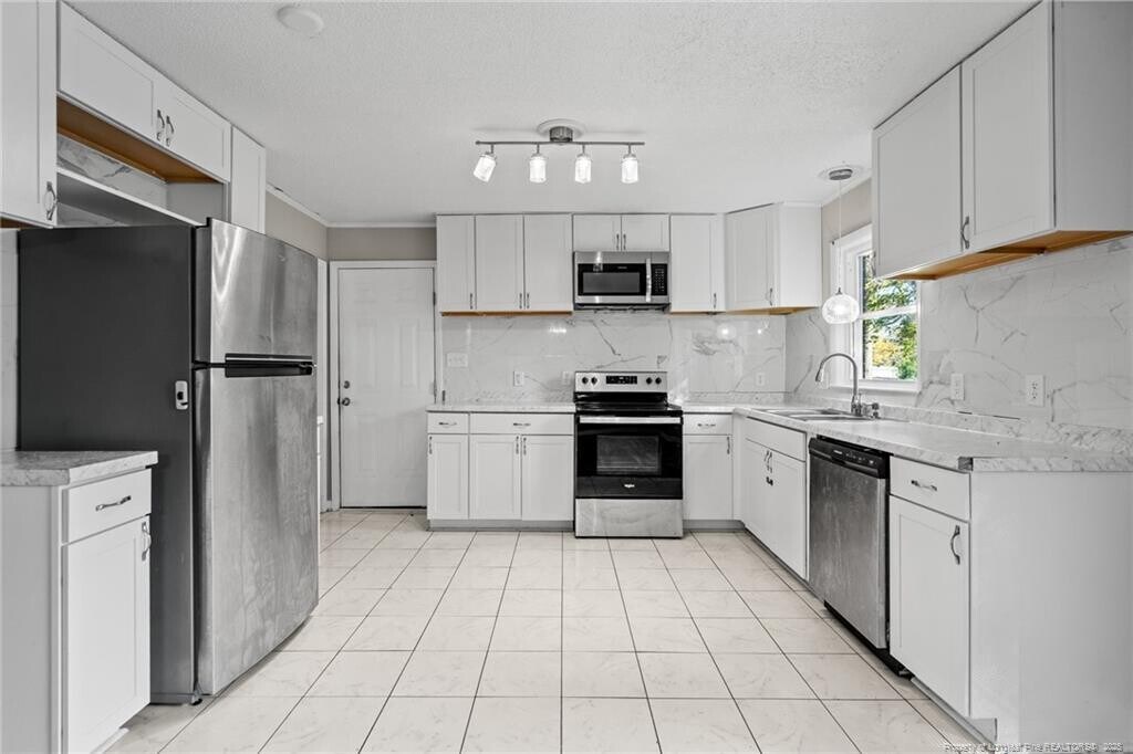 Welcome to this beautiful renovated 3 bedroom/2 bath ranch home! With approximately 1,450 sq ft of living space on a 0.25-acre lot, this home has the perfect blend of comfort, style, and convenience. This home was thoughtfully updated in 2023 and features brand-new fixtures, counters, cabinets, backsplash, stainless steel appliances and a modern eat-in kitchen, new roof (30 year architectural), 2015 HVAC fully serviced, new hot hater heater, new windows, new interior and exterior paint. Flooring throughout offers a tasteful mix of tile, laminate, and carpet gives each area its character and functionality. Spacious fenced backyard with a patio that is ideal for relaxing or entertaining! Close to shopping, dining, entertainment and Fort Bragg. Book your showing today! Available for rent immediately
