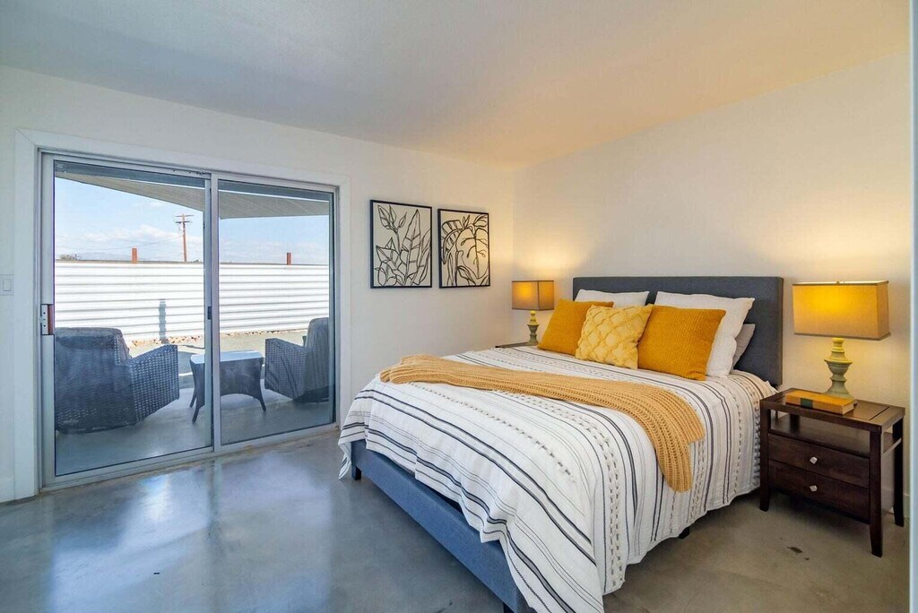 FULLY FURNISHED,**Available for rent-to-own. Mid-Century Gem in the prestigious Joshua Tree Village neighborhood! This recently refurbished home is the ideal starting point for owning a home in Joshua Tree,whether it be for personal enjoyment or to start hosting your own Airbnb. It is only a short distance from the park's entrance and close to the renowned Joshua Tree Saloon. The main bedroom in this two-bedroom,two-bath house is opulent and boasts a spa-like bathroom with a spacious shower. The second bedroom is roomy and provides access to a sizable patio directly. The Galley kitchen has new stainless steel appliances and is roomy. These other highlights of this spectacular renovation include a sizable backyard with breathtaking panoramic views and a sizable fire pit with seating. This property is move-in ready for a family or a perfect investment home. long-term,or monthly rentals. The owner is open to various options.** Hurry,this great opportunity