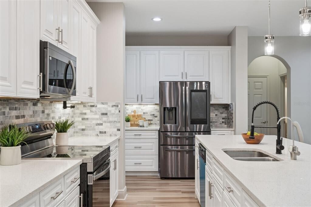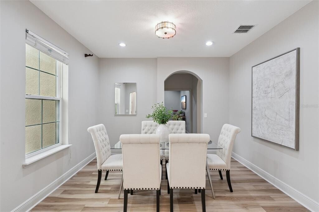 MOVE-IN READY and thoughtfully updated,this spacious residence is located in the established Windermere Landing community and offers serene pond views,energy-efficient construction,and a flexible layout designed for modern living. Recent improvements include a FULL INTERIOR REPAINT,NEW LUXURY VINYL PLANK FLOORING throughout the main living areas,and FRESHLY PAINTED CABINETRY,creating a clean and cohesive interior. The exterior features a durable TILE ROOF with stone accents and classic curb appeal.The bright,open interior is filled with natural light and enhanced by LED LIGHTING and CRYSTAL CHANDELIERS. Living and dining areas flow seamlessly into the centrally located kitchen,which opens to the main living space and features UPDATED CABINETRY,BRAND-NEW APPLIANCES including a NEW STOVE,NEW DISHWASHER,and NEW MICROWAVE,along with ample counter and storage space.The home offers seven bedrooms and five bathrooms,including TWO PRIMARY SUITES,providing flexibility for multigenerational living or guest accommodations. TWO MEDIA ROOMS and TWO LAUNDRY ROOMS add versatility and daily convenience. Bathrooms feature QUARTZ-STYLE MARBLE COUNTERTOPS and UPDATED FIXTURES,and a NEW HOT WATER HEATER adds practical value.Outdoor living includes a PRIVATE POOL overlooking a peaceful pond with scenic sunrise and sunset views,and distant DISNEY FIREWORKS visible in the evenings. Built by Meritage Homes,the property includes ENERGY-EFFICIENT FEATURES such as a 15 SEER A/C SYSTEM,ENERGY STAR APPLIANCES,a SPRAY-FOAM INSULATED ATTIC,and LOW-E2 WINDOWS. Windermere Landing offers COMMUNITY AMENITIES including a pool,clubhouse,playground,and recreation fields,along with A-RATED SCHOOLS and convenient access to shopping,dining,and major roadways. MLS# O6379977