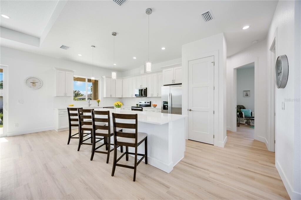 Now available for rent,this beautifully finished 3-bedroom,2-bath home offers modern design,quality construction,and a spacious open layout in a desirable Port Charlotte location. Inside,you’ll find 10-foot ceilings,8-foot doors,and luxury vinyl plank flooring throughout,creating a bright and comfortable living space. The open-concept kitchen features a large quartz island,ample cabinetry,and modern finishes—perfect for everyday living. The primary suite includes a walk-in closet,dual vanities,a soaking tub,and a separate shower. Additional features include impact-rated windows and doors,spray foam insulation for energy efficiency,tray ceilings,French doors,and an attached garage. Enjoy the flexibility of an oversized lot with no HOA,all while being conveniently located near Englewood beaches,shopping,dining,and everyday amenities. Washer and dryer can be made available. Rental Requirements: First month,last month,and one month security deposit required No pets Application required through RentSpree MLS# A4685095