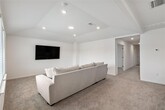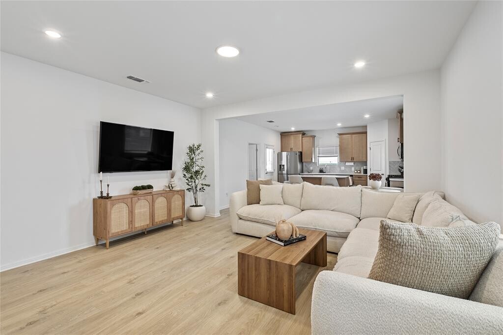 Step into style and comfort in this modern and spacious 4-bedroom, 3.5-bath, + 1 office (with en suite bathroom) home located in the highly desirable Crosswinds community in Kyle. Designed with thoughtful finishes and flexible spaces, this home features light oak wood cabinets, a bold teal backsplash, granite countertops, and a spacious kitchen island perfect for entertaining. The primary suite is conveniently located on the main floor and includes a large walk-in closet and a beautifully appointed bathroom. Upstairs, you'll find three additional bedrooms, a full bath, and a generous office with its own en suite—perfect as a fifth bedroom or private guest suite. The second living area offers endless potential, easily transformed into a home theatre, playroom, or creative space. The converted garage has been transformed into a luxury home gym, making wellness convenient and stylish. Outside, enjoy the expansive backyard ready for gatherings, gardening, or creating your own oasis. As a resident of Crosswinds, you’ll enjoy access to top-tier amenities including a resort-style pool, splash pad, parks, trails, sports courts, and a vibrant community atmosphere. With curb appeal, space to grow, and luxury upgrades throughout, this home offers everything you need—inside and out.