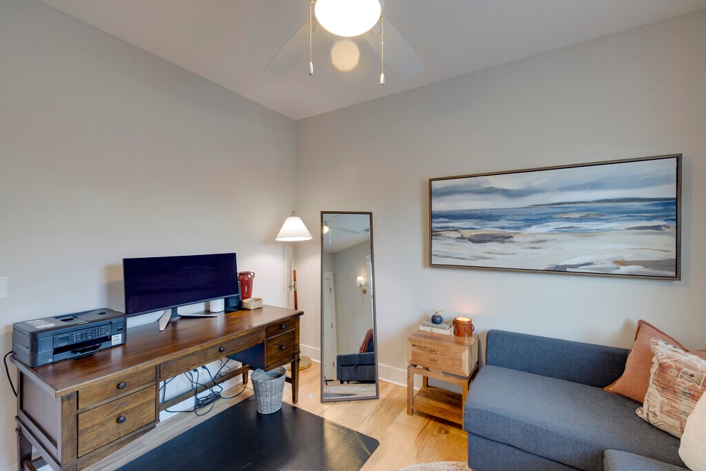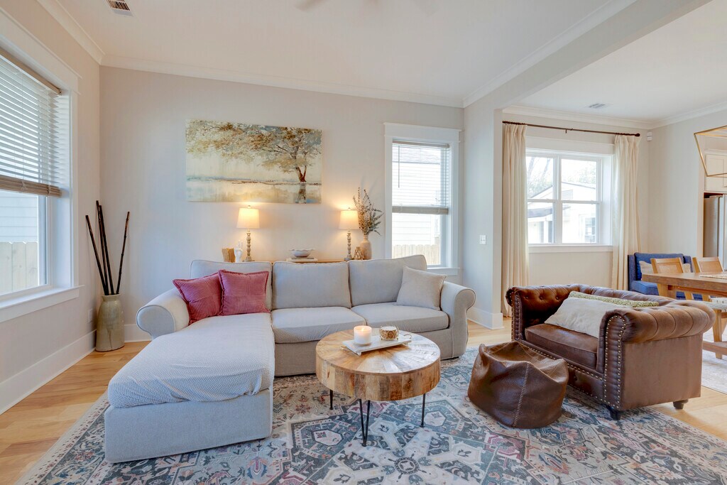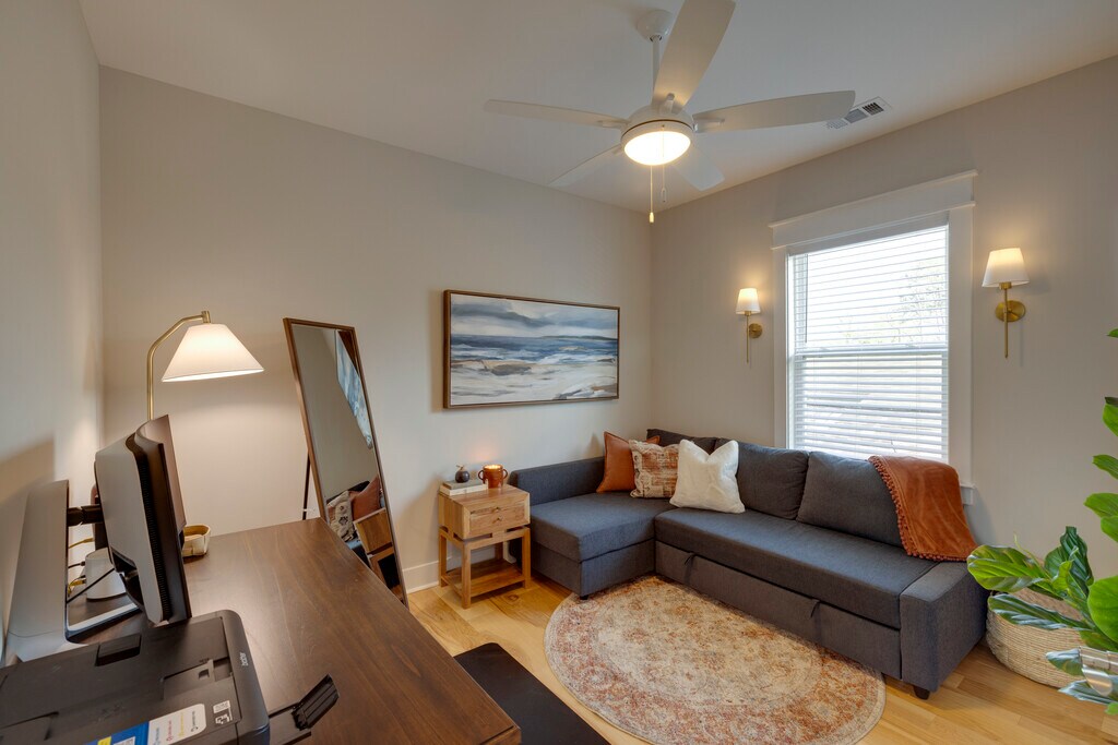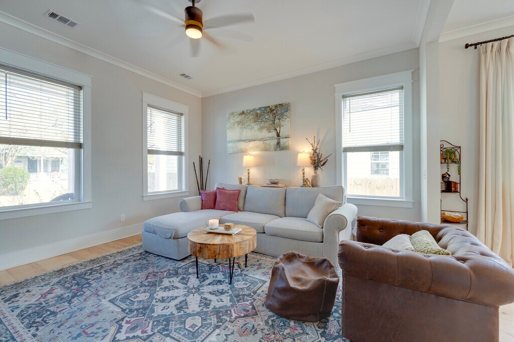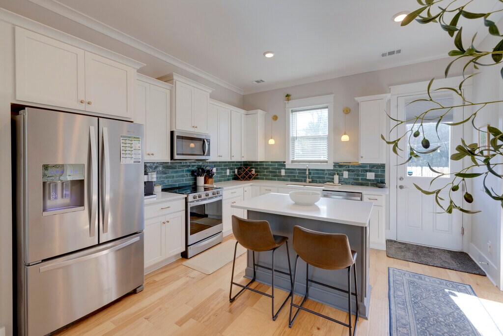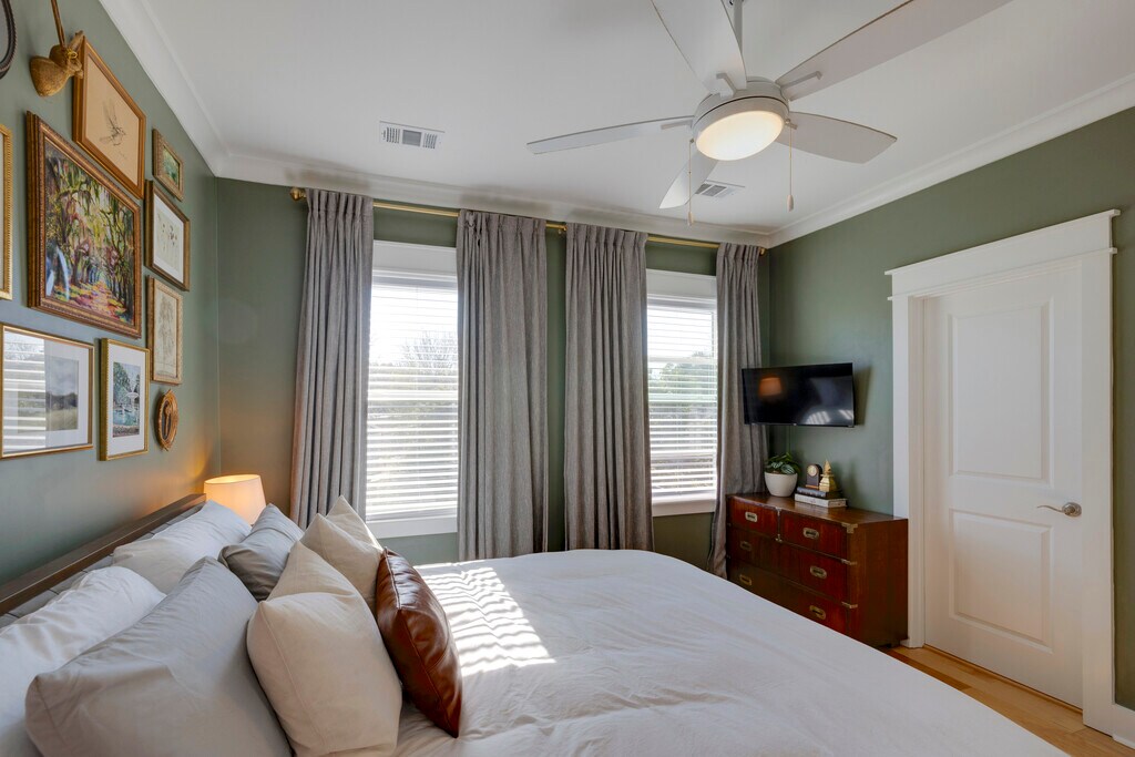 Located in the heart of Midtown, this home is perfect for those looking to be close to the action, while still enjoying the tranquility of a quiet neighborhood. It is a newly built two-story, 3 bedroom, 2.5 bath, entire home. It has 12' ceilings and open concept downstairs that feels very airy & spacious. On street parking is available but there is also two private parking spots located in the rear of the house. There is a fenced in backyard with a private patio and propane grill & fire pit. The home has a dedicated laundry room on first floor and a large kitchen with a walk-in pantry. This home has been furnished with comfort and quality in mind! It includes premium furniture, mattresses, pillows & linens, high-speed Wi-Fi, and a dedicated work space. It is also fully equipped with 24-Hr Simplisafe Security monitoring, with cameras in the front and rear entrances of the home. It is a short walk away from many local restaurants & shops, SCAD buildings & historical attractions. The closest bus stop is less than 300ft away on the corner of E BROAD & E 33rd Street. And less than a mile walk from Forsyth Park!
