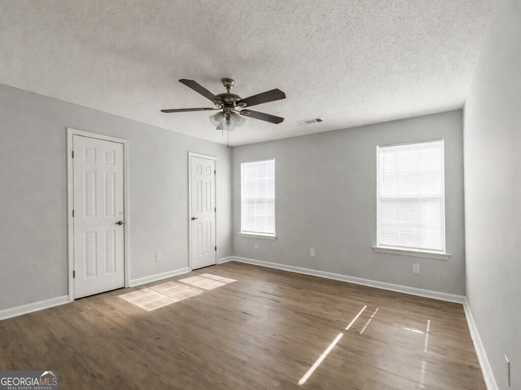 This well-proportioned 3 bedroom 2 bath single-family home offers approximately 1,226 square feet of living space with a functional layout designed for everyday comfort and flexibility. The exterior show a traditional faade with an attached two-car garage, driveway parking, and established landscaping. Rear exterior highlight a spacious backyard area, offering room for outdoor enjoyment or additional uses. Inside, the common living areas feature vaulted ceilings, durable flooring, and abundant natural light from multiple windows. A fireplace serves as a focal point in the main living space, adding architectural interest. An additional open area adjacent to the kitchen provides flexible use options such as a dining area, secondary living space, or home office setup. The kitchen is equipped with ample cabinetry, generous counter space, and standard appliances. Adjacent breakfast or dining space is enhanced by bay-style windows that bring in natural light. The primary bedroom offers a spacious layout with ceiling fan and direct access to the primary bathroom. The primary bathroom includes a vanity, tub/shower combination, and neutral finishes. Secondary bedrooms are well-sized and include closets and natural light. Conveniently located in McDonough (Henry County), this property provides easy access to local services, roadways, and surrounding amenities. MLS ID 10689094