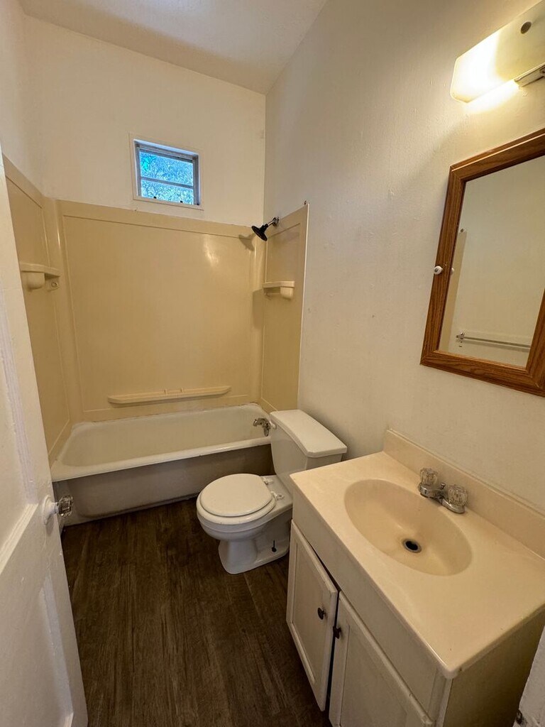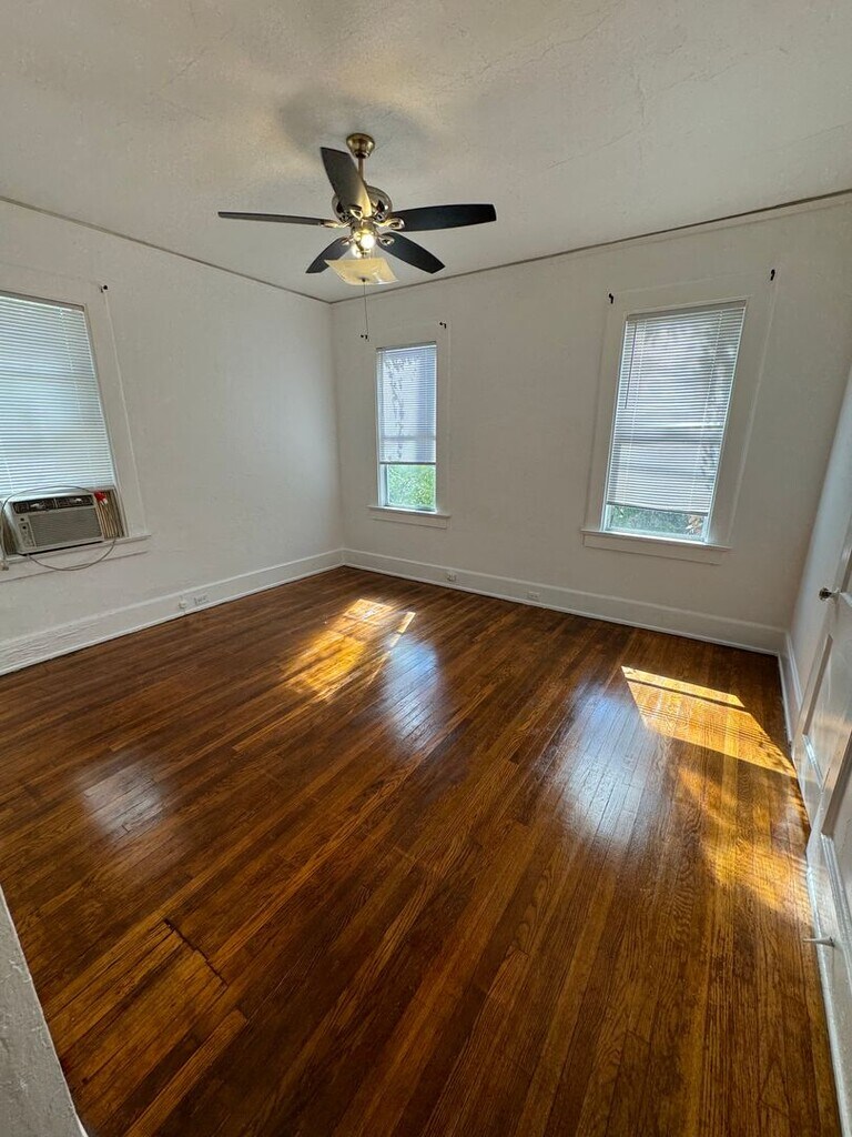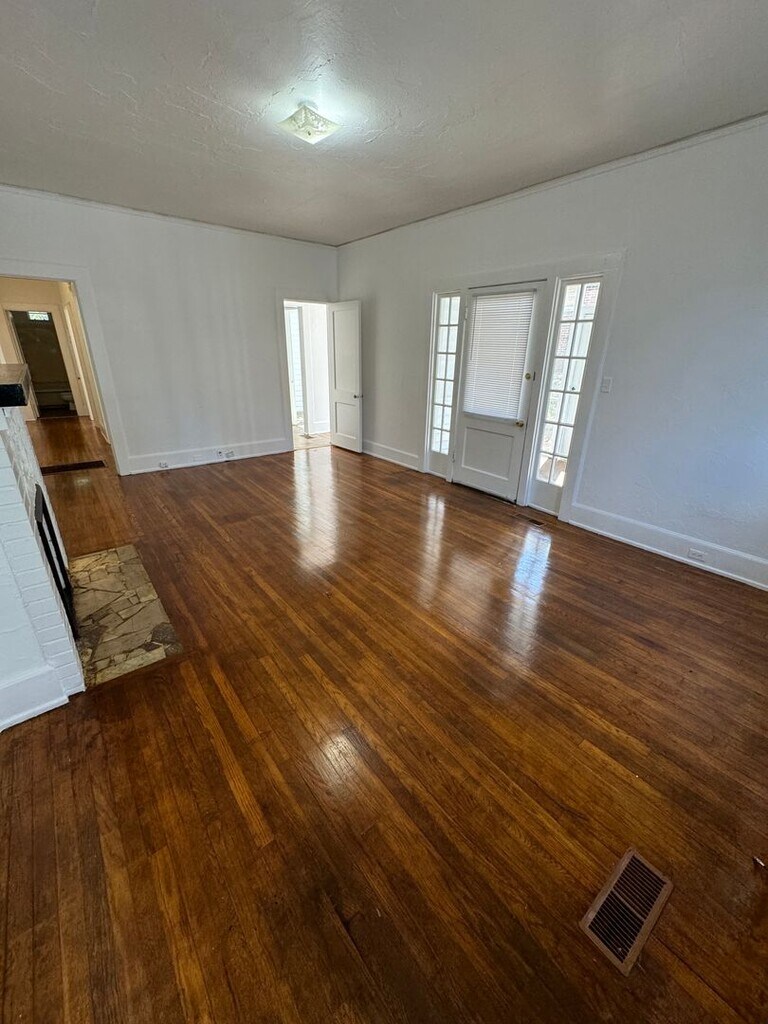 Triplex unit with one bedroom, one bath, kitchen with electric range and fridge, spacious living room with decorative fireplace, hardwood floors, screened porch, laundry room, off-street parking for one vehicle, gas heat and window AC. Gas hot water. Water and Sewage provided. No Section 8. No pets.