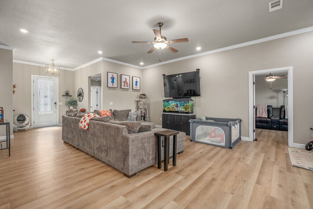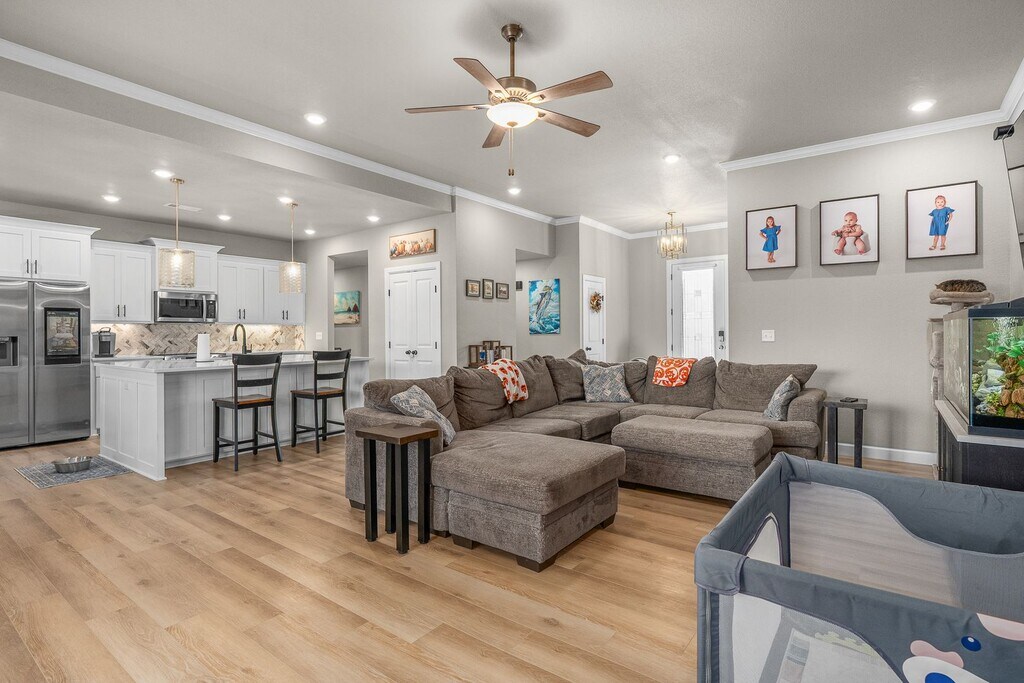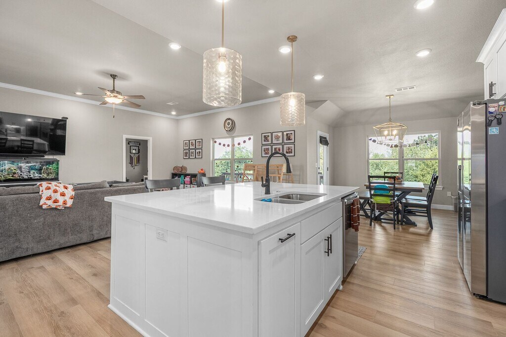 This beautiful home features an open-concept layout designed for modern comfort and style. Spanning 2,501 square feet, it offers five spacious bedrooms and generous living areas, including a seamless flow between the kitchen, dining, and family room, making it perfect for hosting friends and family. The luxury vinyl plank flooring throughout brings both elegance and durability, making upkeep a breeze. The primary suite provides a peaceful retreat with its spa-inspired ensuite and walk-in closet, creating a true escape within your home. Step outside to enjoy a private backyard with a deck that is ideal for gatherings or simply relaxing outdoors. With its prime location and impressive design, this property blends comfort, sophistication, and convenience, offering everything you could want in your next forever home. Tenant is responsible for all utilities and lawncare. Please note: This property has been staged for visual representation only. Furnishings depicted are not present in the property. Pet Policy: 1 Pet Small Dogs & Cats Allowed (25lb mature weight limit) Pet Fee: $500 Pet Rent: $20/month Application Fee: $50 (Per Applicant Over the Age of 18 - Nonrefundable) Admin Fee: $250 (Due upon Lease Signing - Nonrefundable)