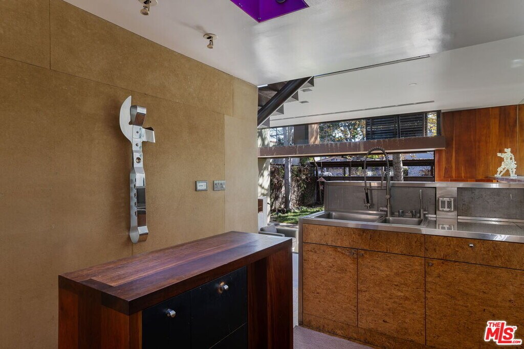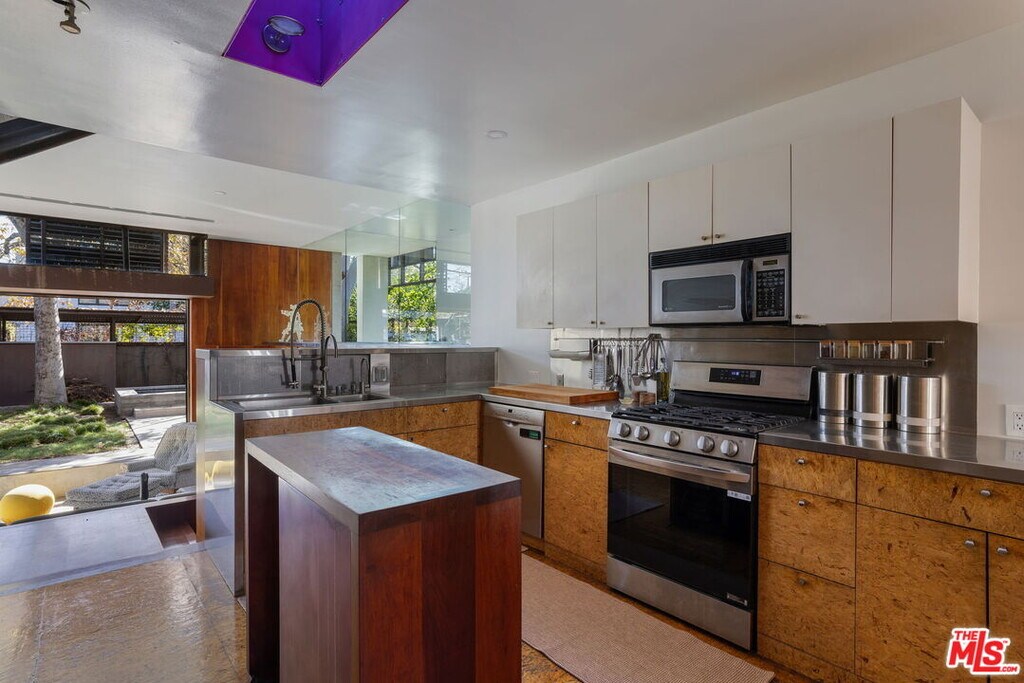 Among the quiet bungalows of Venice, California, something unexpected rises. The Solar Umbrella Residence doesn't just occupy its lot - it reimagines it, stretching across a through lot as both shelter and statement, a home that earns its place in the California sun. At its heart is a simple but powerful idea, borrowed from Paul Rudolph's visionary Umbrella House of 1953: let the roof do more. Here, the solar canopy floats overhead like a second sky, filtering light, tempering heat, and casting the whole composition in a warm, considered shade. Inside, the home unfolds with quiet intention. Two bedrooms and two baths ground the first floor in everyday comfort, while a treehouse master loft perches above - open, elevated, luminous. Every material has been chosen with care: recycled, renewable, high-performing. Every surface, every planted edge, every stone underfoot considered for what it gives back as much as what it takes. The Solar Umbrella is more than a house. It is a way of living - rooted in place, alive to the climate, and radiant with possibility. MLS# 26653277