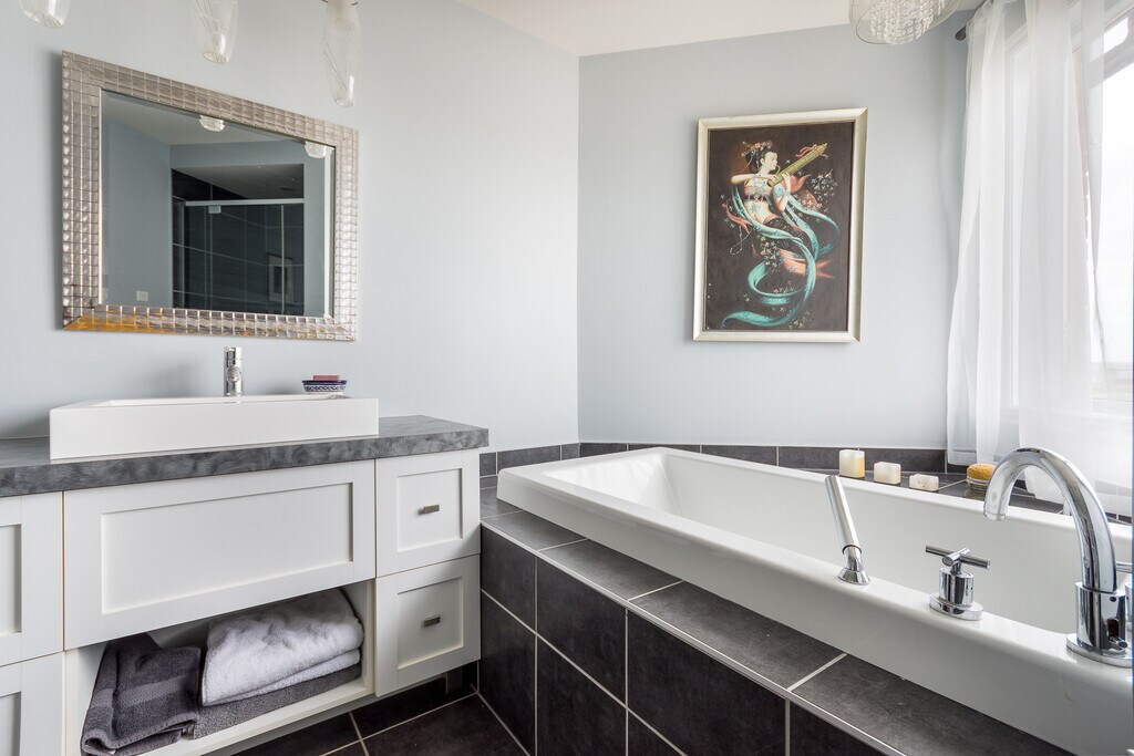 For Rent –De Lusa Street, Brossard RARE ON THE MARKET – Elegant 3 Bedrooms Condo (on 2 levels) with Garage in the Heart of Quartier DIX30! Rent: $2,300/month | Available: December 2025 (to be confirmed) Enjoy exceptional living in this bright and spacious two-level condo. With its open-concept design, modern finishes, and prime location, this property is a rare find! Property Highlights: • 3 bedrooms, including a master suite with walk-in closet and private ensuite bathroom • 2 full bathrooms • Open-concept main floor filled with natural light and a stunning view • Private terrace with peaceful stream views—perfect for relaxing or entertaining • Saltwater pool access for refreshing summer days • 2 parking spaces: 1 private heated garage + 1 outdoor spot at the entrance Prime Location: • Steps from shops, restaurants, and services in the DIX30 district • Easy access to downtown via RTL bus lines #47, #192, and #21 (10–15 minutes walking distance) • REM station just minutes away Additional Information: • High end dishwasher and oven included • Non-smoking environment • No pets allowed • Credit check required prior to lease approval This home offers comfort, tranquility, and convenience—ideal for tenants seeking a modern lifestyle in one of the South Shore’s most vibrant neighborhoods!