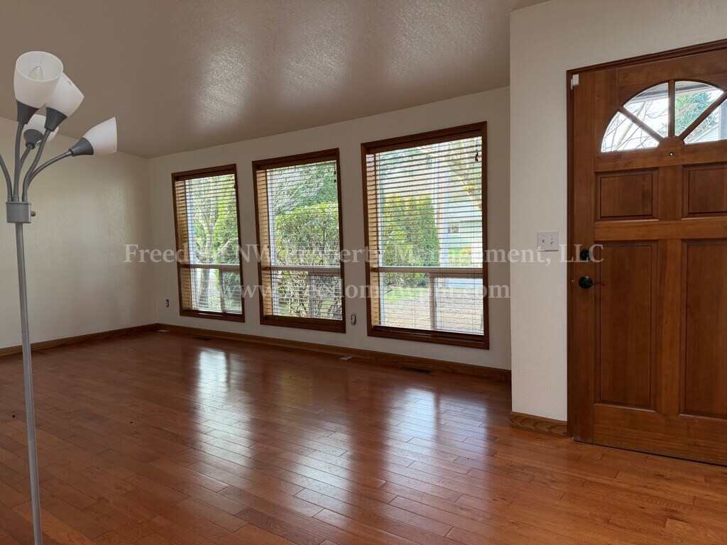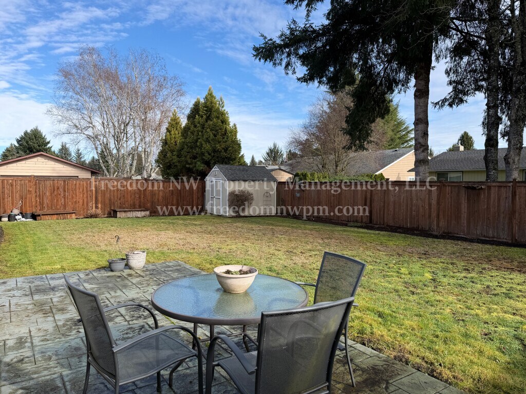 Located in the desirable Capital City Golf Course community, this well-maintained rambler offers comfort, space, and style. The home features hardwood and tile flooring, a cozy gas fireplace, and both a spacious living room and separate family room, giving you plenty of room to relax or entertain. Generously sized bedrooms and a thoughtful layout make the home feel open and inviting. The kitchen comes equipped with a refrigerator, range, dishwasher, and microwave. A washer and dryer are also included for your convenience. Enjoy outdoor living with a fully fenced yard, stamped concrete patio, and additional storage shed. A two-car garage provides plenty of parking and storage. Pets welcome, and no smoking. A fantastic location makes this home a must-see.
