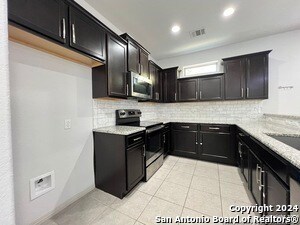 Beautiful 3 Bedroom, 2.5 Bath home near the Medical Center! Wood like vinyl flooring downstairs with carpet in the bedrooms. Kitchen with granite counter tops, dark cabinets, and stainless steel appliances (refrigerator not included). Charming light fixtures throughout the downstairs. All bedrooms upstairs. Primary bedroom includes full bathroom with double vanity. Good sized backyard with patio slab.