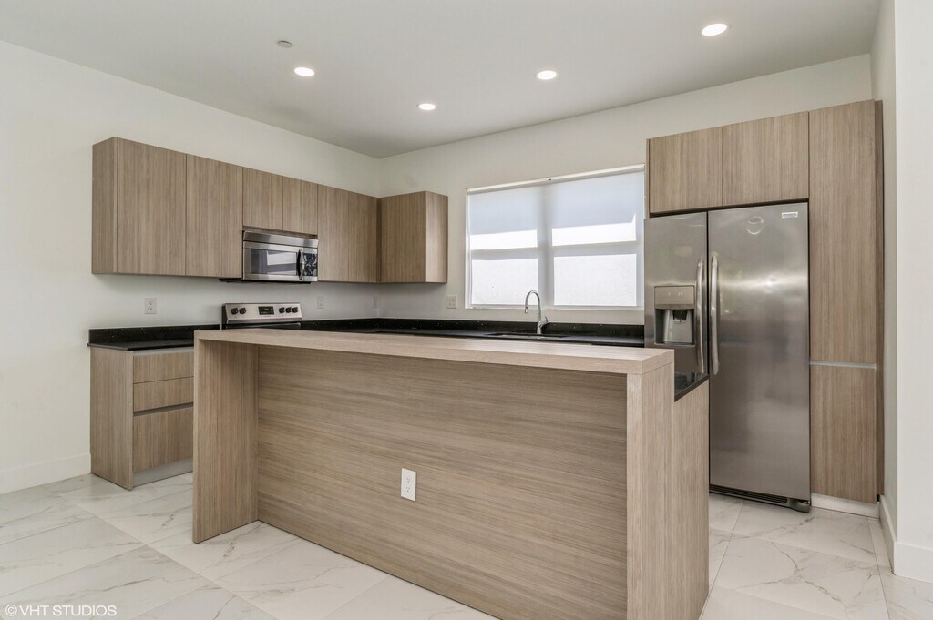 Elegantly designed modern townhome featuring 3 bedrooms and 2.5 bathrooms. Boasting impressive 10ft ceilings adorned with sleek LED flush lights. Chic finishes,including waterfall chrome faucets,tile flooring on the 1st level,& sophisticated wood laminate on the 2nd floor. The kitchen showcases stainless steel appliances,a convenient wine cooler,& quartz countertops. Enjoy the contemporary touch of laminated doors with magnetic closers,coupled with the security of impact doors and windows throughout. MLS ID B26009164