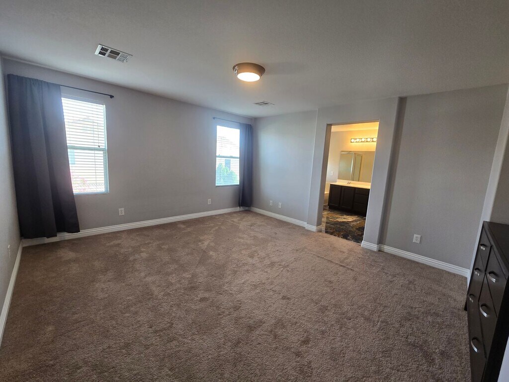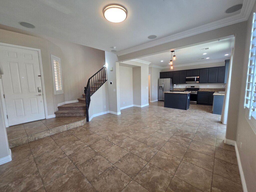 Experience elevated living in this impeccably appointed 3-bedroom, 2.5-bath, 2-car garage home. Sophisticated design, premium upgrades, and an exceptional layout create a truly remarkable rental. Enjoy an expansive open-concept living area with elegant Venetian shutters and a chef’s kitchen featuring granite countertops, a large island, refinished cabinetry, and stainless steel appliances. The great room offers custom surround sound for immersive entertainment. Upstairs, the luxurious primary suite includes a spacious walk-in closet, dual vanities, a walk-in shower, and a spa-style soaking tub, with a convenient laundry room nearby. The fully renovated backyard is ideal for relaxing and dining outdoors. Community amenities include a pool and fitness center. Ideally located less than a mile from the 215 freeway and minutes from the Strip and Harry Reid Airport. Please note the rent includes $100 per month for the Sewer, Trash, and the Resident Benefit Packet. Please call with any questions