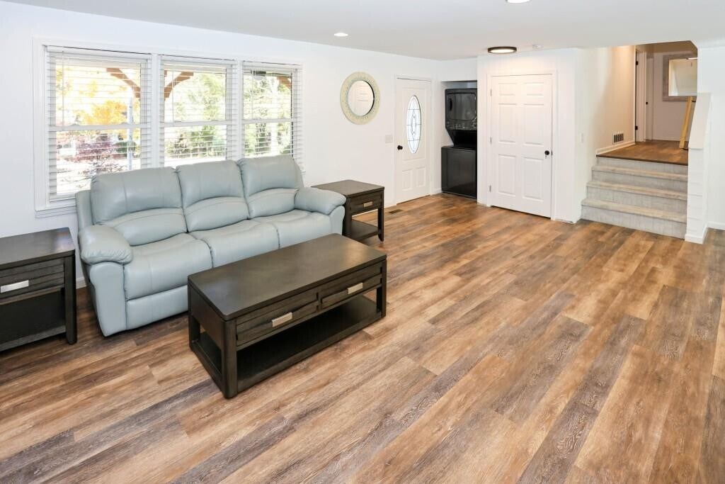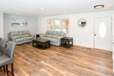 Completely renovated ranch featuring a stunning,open-concept floor plan! The spacious family room flows seamlessly into the updated chef's kitchen complete with new white shaker cabinets,granite counter tops,stainless steel appliances and designer lighting. New LVP flooring throughout and top to bottom fresh neutral paint. This 3-bedroom,2-bath home offers beautifully remodeled bathrooms with custom tile work,granite vanities,and all-new fixtures. Enjoy outdoor living on the new Trex deck overlooking a serene wooded backdrop. Additional highlights include a two car garage and fresh,modern finishes throughout. Rental includes all new modern furnishings and washer/dryer. Above grade space is available to rent immediately. Shown by appointment only.