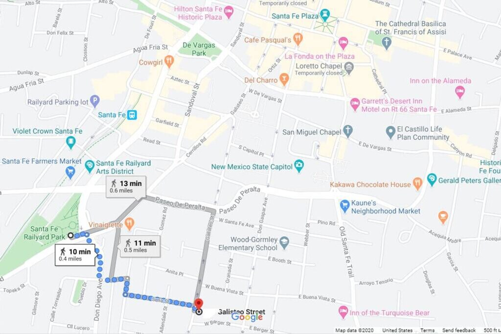 616 1/2-721 Galisteo St has 5 shopping centers within 0.6 miles.