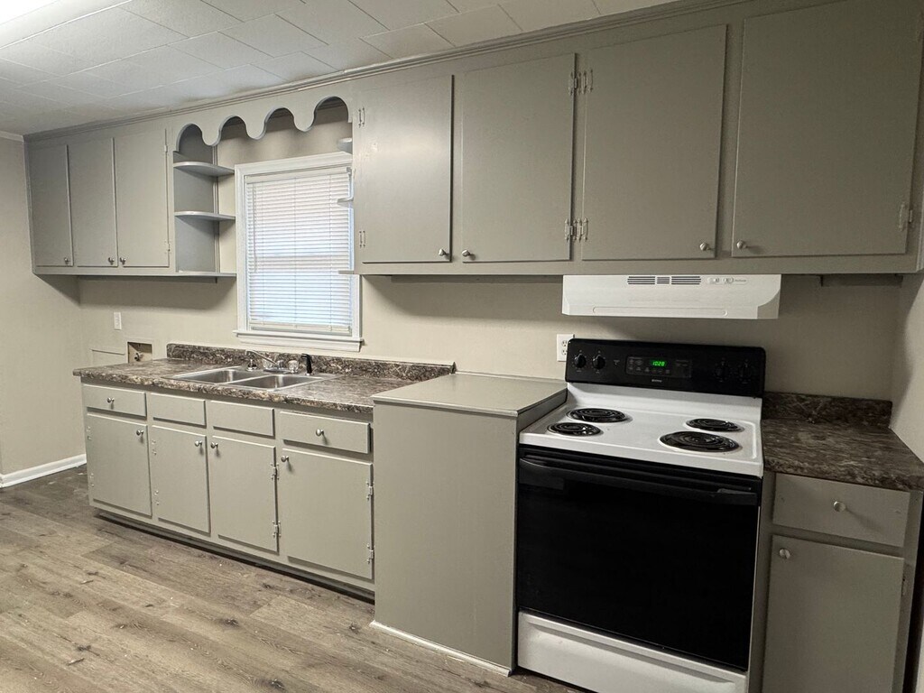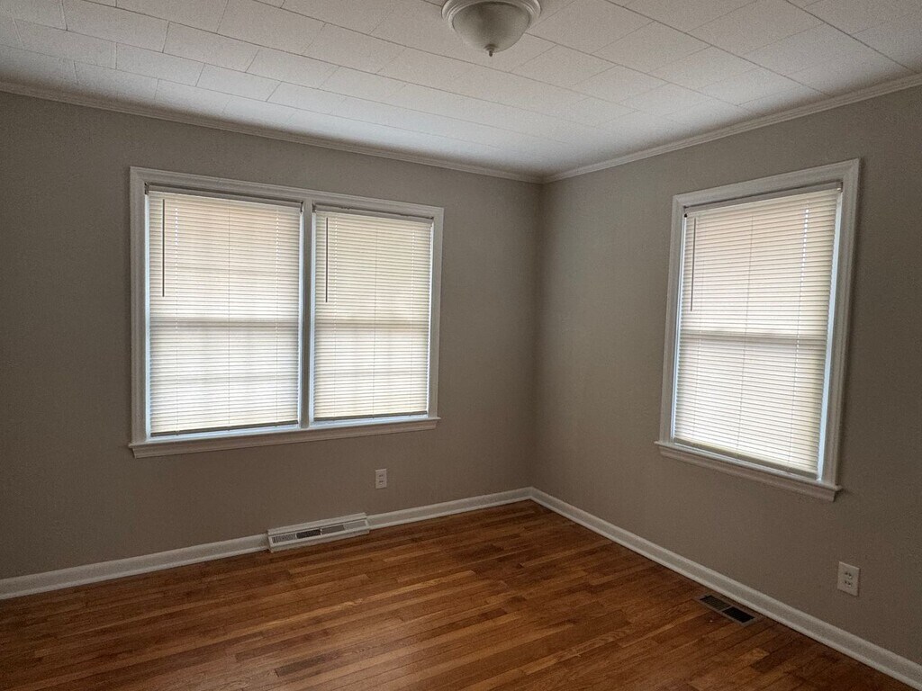 Three bedroom brick home with one bathroom .There are hardwood floors throughout. Large kitchen/dining room combination. Range and refrigerator are furnished. Washer/Dryer Connections are located in the kitchen. Central (gas) heat and air condition. Large fenced backyard. The bathroom has beeen updated with new wainscoting and