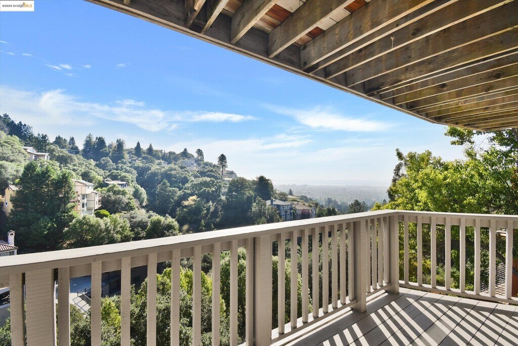 Nestled in the exclusive Claremont Hills this residence offers soaring ceilings,sliding glass doors,and on a clear day,enjoy captivating peekaboo views stretching across the Bay to SF. The main level welcomes you with sun-filled open living spaces,anchored by a striking fireplace and framed by sliding glass doors that open onto a wraparound balcony. From here,take in sweeping vistas of lush greenery and city lights below—an ideal setting for both entertaining and quiet evenings. The formal dining area flows seamlessly from the living room,while the well-appointed kitchen offers granite counters,and stainless appliances. The second floor features the primary suite—a true retreat with a private balcony,and a luxurious sunken tub. Downstairs,a separate entrance reveals a full secondary living space complete with its own kitchen living room,and two bedrooms. Additional highlights include a dedicated laundry room,a two-car garage,and a generous bonus storage room. Outdoor living is equally impressive,with multiple balconies and decks offering ample space to relax,entertain,and take in the natural beauty of the Berkeley Hills. Prime location w/quick access to the Claremont hotel,Elmwood & Rockridge shopping the freeways and Starr market