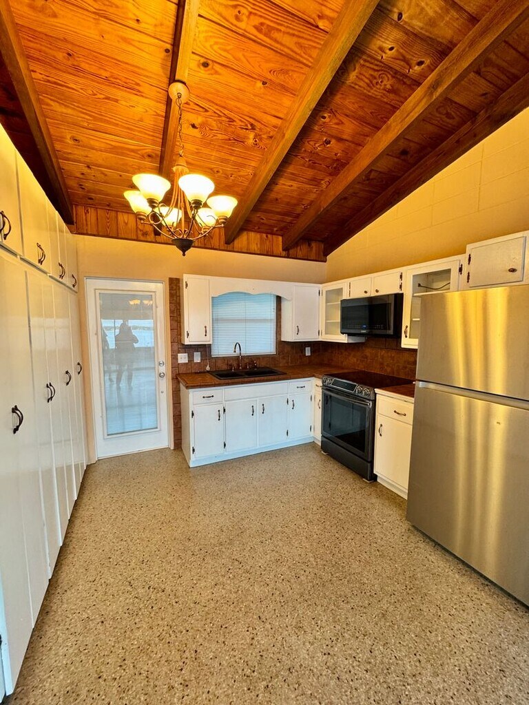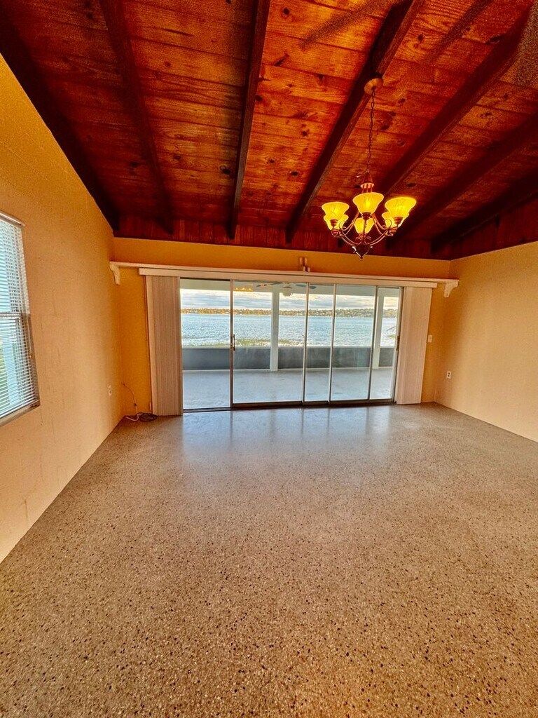 INCLUDES LAWN AND BEACH CARE. You will love living feet from the sandy shores of Crooked Lake! Watch the sunrise and sip coffee from your large screen porch which overlooks your private beach. This 2/2 has charm everywhere you look with wood beam ceilings and natural light streaming inside. Laundry room is located off of the carport. Move in costs include $50 app fee, $100 tenant set up fee, $250 pet fee plus rent and security deposit. Call Joni at to schedule your showing.