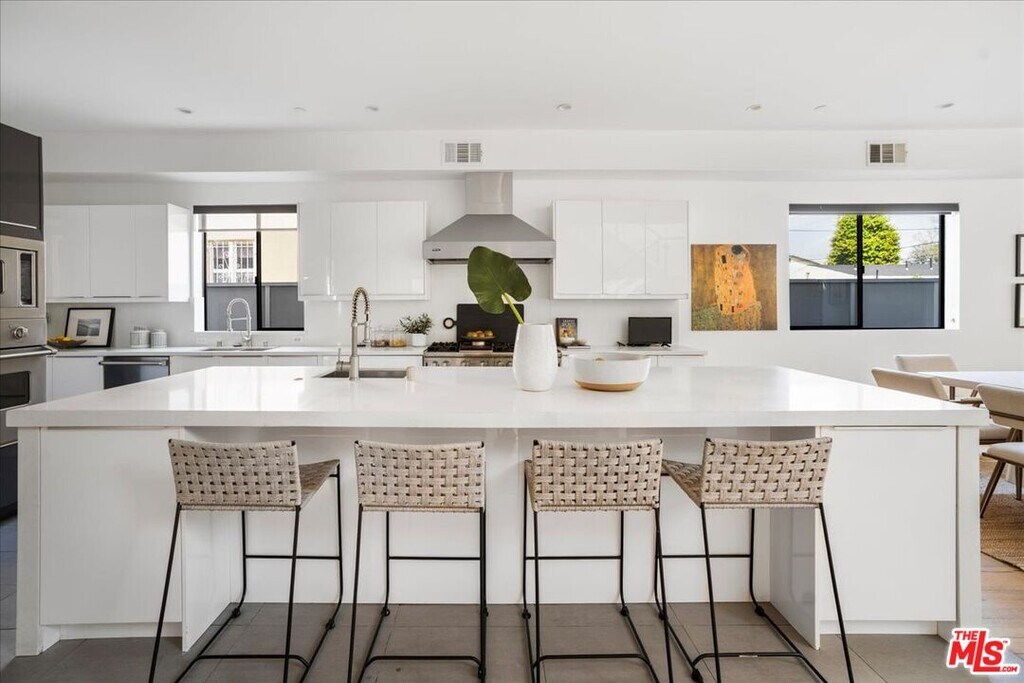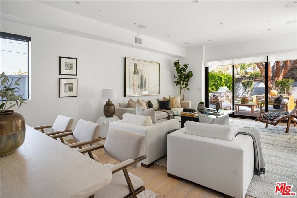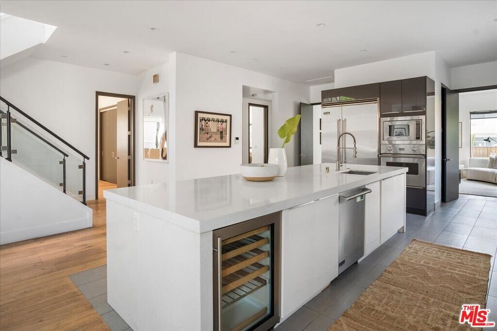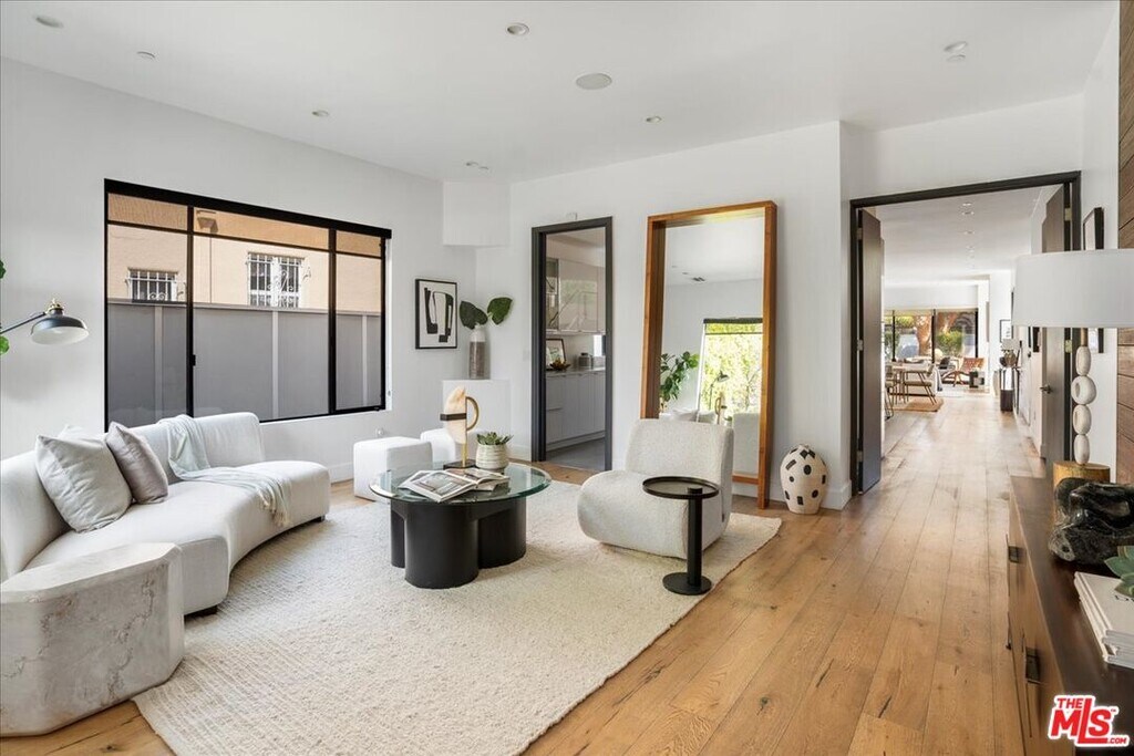 Located in highly coveted Prime Beverly Grove, this private, gated modern architectural home offers seamless indoor-outdoor living. Filled with natural light, the spacious two-story layout includes a basement media room.Features lofty ceilings, recessed lighting, designer tile, and hardwood floors throughout. The custom Chef's kitchen boasts Viking appliances, marble counters, dual sinks, three ovens, large center island, stainless steel accents, and a walk-in pantry.Living room opens via pocket sliding doors to a stunning backyard oasis with pool, spa, firepit, BBQ, waterfall, and gazebo perfect for entertaining.Upstairs, the luxurious primary suite features a fireplace, balcony, soaking tub, rain shower, and large walk-in closet.Walking distance to Melrose Ave dining, shopping, and nightlife. MLS# 25564835