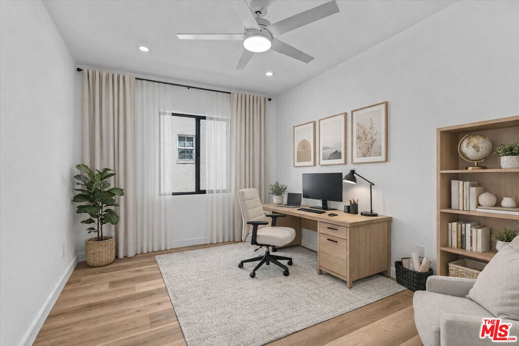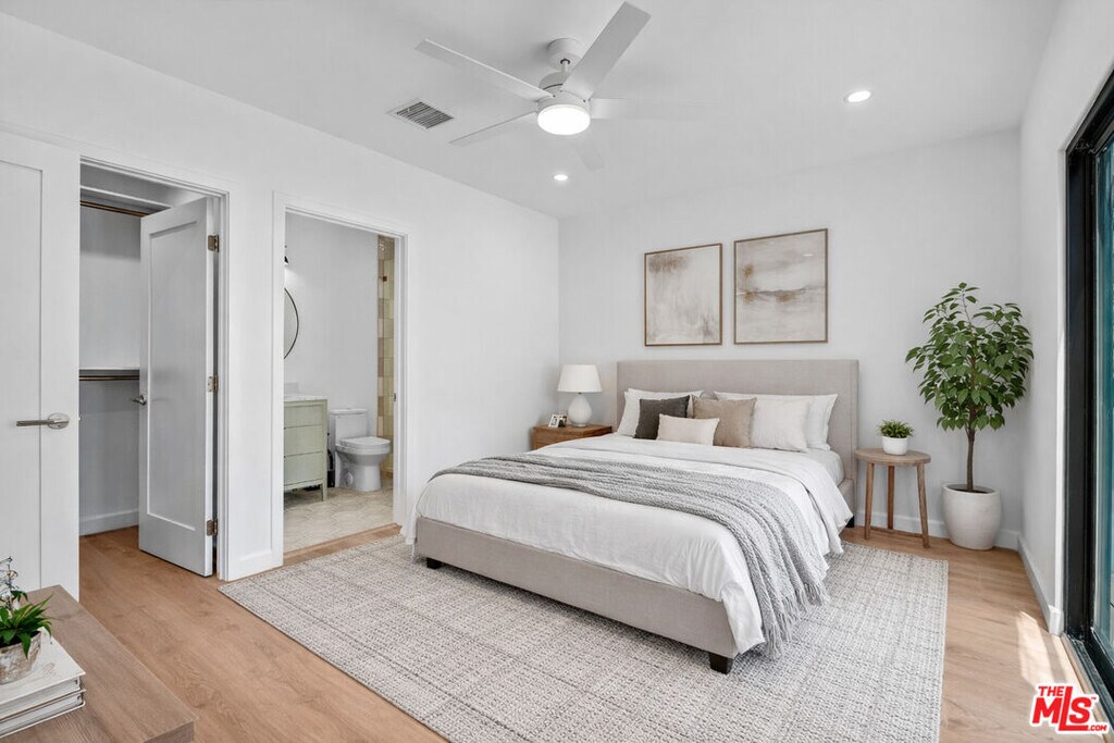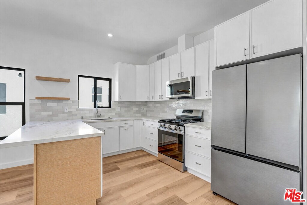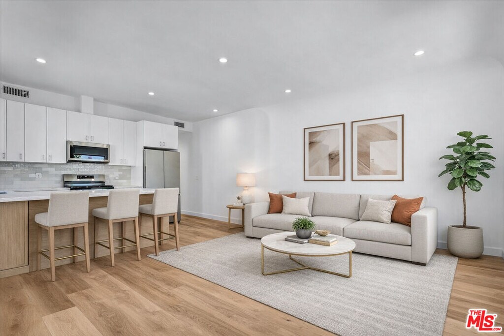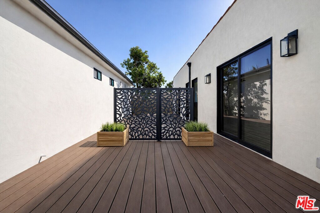 Welcome to this newly constructed, modern 3-bedroom, 2-bath residence in a side-by-side duplex. Thoughtfully designed to feel like a single-family home, this unit shares only a hallway wall - keeping bedrooms private, quiet and well-separated from the neighboring residence. Step inside to a bright, open-concept layout filled with natural light - perfect for both everyday living and effortless entertaining. The sleek, contemporary kitchen features quartz countertops, custom cabinetry and stainless steel appliances, blending style with functionality.The primary suite offers a serene retreat with a beautifully finished en-suite bathroom and walk-in closet. Two additional bedrooms provide flexibility for guests, a home office or a growing household. Both bathrooms are outfitted with designer fixtures and clean, modern finishes. Enjoy your own private outdoor deck - ideal for al fresco dining, relaxing or hosting. Additional highlights include in-unit laundry, energy-efficient systems and two car driveway parking. Ideally located in the heart of Los Angeles, just moments from premier shopping, dining and entertainment, this turnkey home delivers elevated, contemporary living in one of the city's most desirable neighborhoods. MLS# 26666845